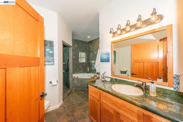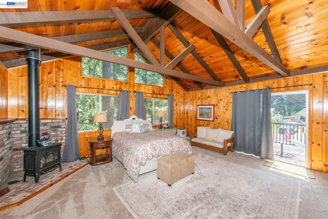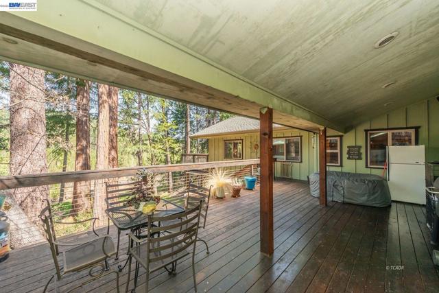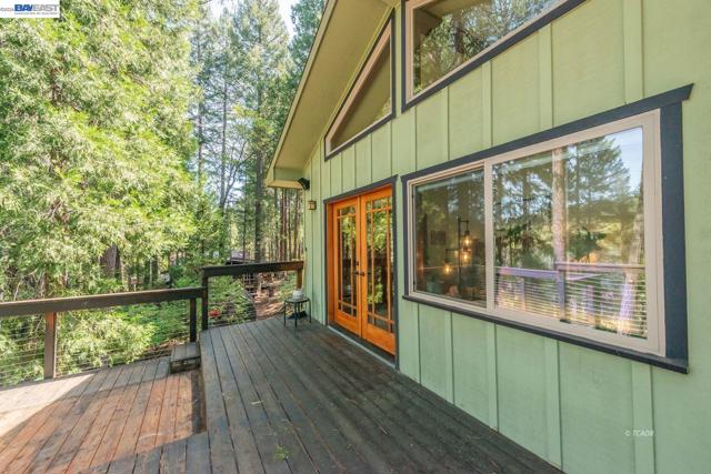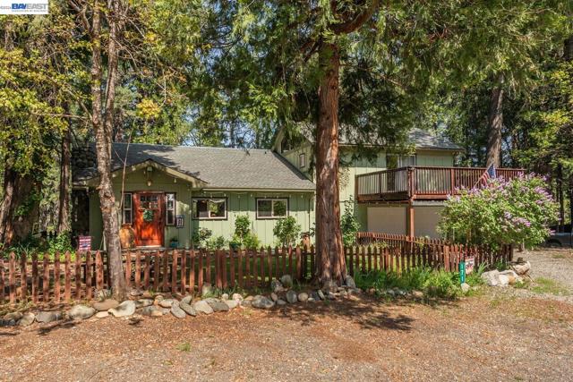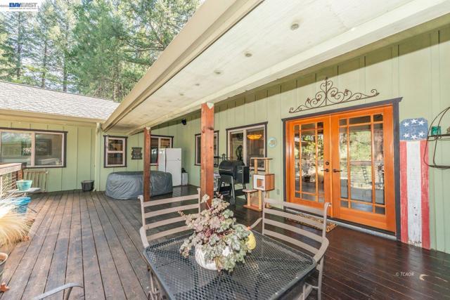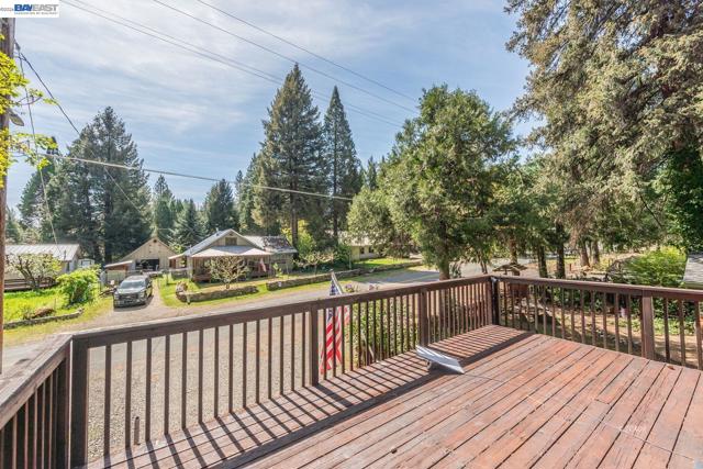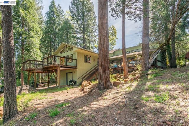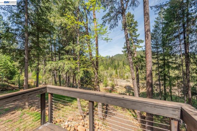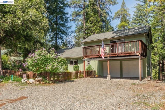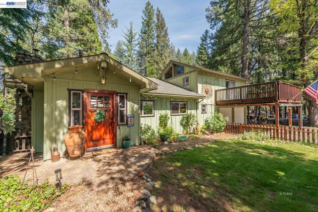 Beautifully restored in 2008, this home offering 2,174 sq ft with 2 spacious primary ensuite bedrooms and 2.5 baths. Blending historic character with modern updates, the home features Douglas Fir hardwood doors, trim, and window casings, tile entry, and engineered hardwood flooring in the main living areas. Kitchen includes granite countertops, Hickory cabinetry, and walk-in pantry. Dining room flows to living area both with French doors leading to covered back deck, plus a cozy sitting room with custom carpet and floor-to-ceiling blue pine shelving. Main-level primary suite offers walls of windows, French doors to a private deck, and spa-style bath with radiant heated tile floors, soaking tub, granite counters, and walk-in tile shower. Upstairs features a large second primary suite with balcony access, front deck, and loft. Additional amenities include half bath on main level, attached 2-car garage with workshop, lower workshop, expansive back decking with mountain and creek views, and whole-house generator (2022), all on .51 acres. Close to Trinity Lake and Trinity Alps Wilderness-ideal for year-round living or a mountain retreat.