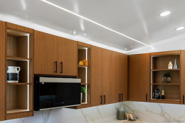 This breathtakingly beautiful West University City remodel is so gorgeous it could be a contender for the San Diego Home and Garden featured home of the month! Seller's tasteful touch is sure to impress even the pickiest of buyers, featuring new light and bright paint, single beam vaulted ceilings, brand new LED lighted kitchen cabinetry and counter tops with waterfall, stainless appliances, spacious and airy family room with rectangular skylights, master retreat with ensuite resort-style bath with custom stone, lighted cutout, complete with jetted tub and open shower... too many upgrades to list! Enjoy a nice cup of coffee or glass of wine and take in those Socal breezes under the covered patio in the large, easy maintenance yard--perfect for BBQs and entertaining and with family fruit trees! This home is a dream come true.