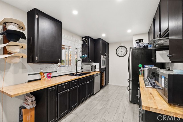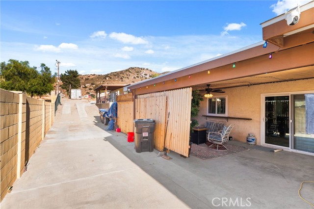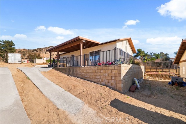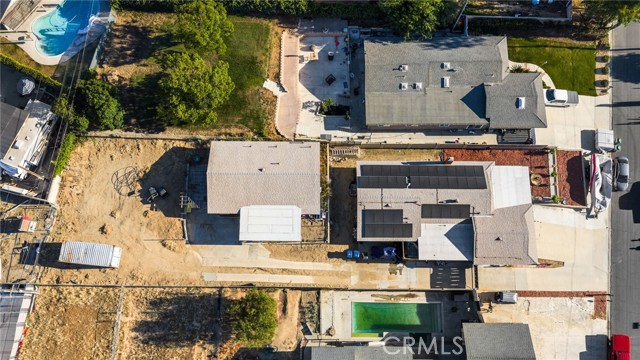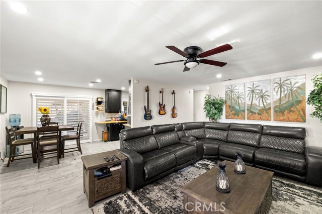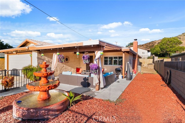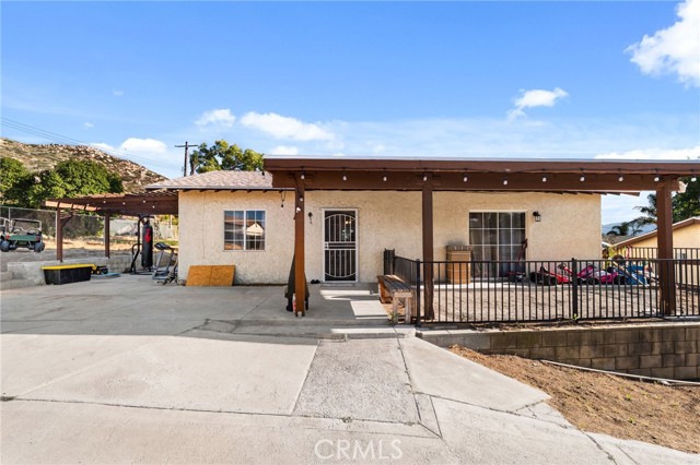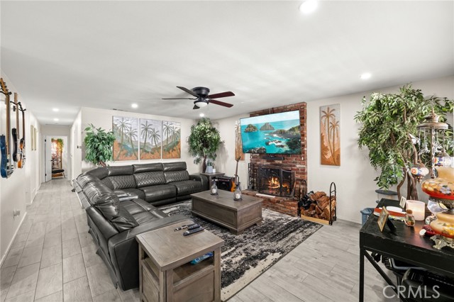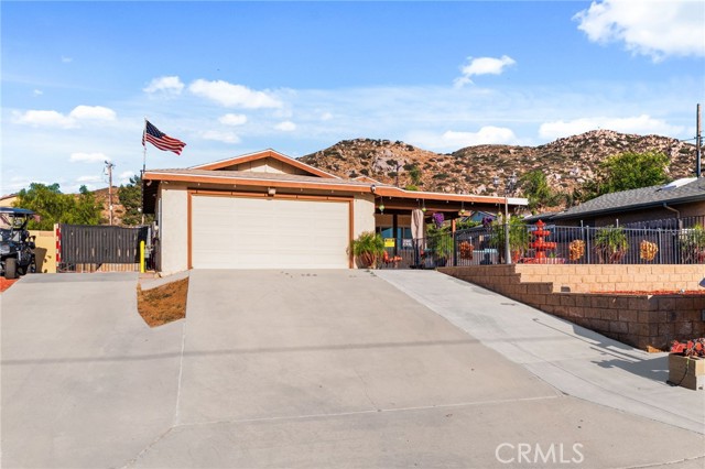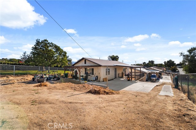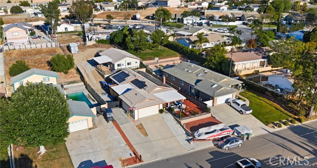Two Residences on One Lot in the Sought-After City of Norco! Beautifully updated, this one-of-a-kind property sits on an expansive 13,068 sq. ft. lot and includes RV parking for added convenience. The front home offers 1,316 sq. ft. with 3 bedrooms, 2 bathrooms, and an attached 2-car garage. Inside, you’re welcomed by a bright, open-concept layout featuring dual-pane windows, plantation shutters, tile flooring, and energy-efficient recessed LED lighting. The upgraded kitchen showcases butcher block counters, a decorative tile backsplash, modern fixtures, and updated appliances. The living area is both comfortable and inviting, highlighted by a brick-accented fireplace, ceiling fan, and large windows that lead out to a covered front patio. The primary suite features its own wall-mounted fireplace, ceiling fan, shutters, and a remodeled private bathroom complete with a custom vanity, a tiled walk-in shower with river rock detail, and glass doors. Two additional bedrooms are spacious and well-appointed with ceiling fans and shutters. The secondary bathroom has been tastefully renovated with a tiled shower/tub combination, glass enclosure, and upgraded vanity. Recent improvements include a 40-panel solar system with backup battery (leased), new roofing on both homes, and upgraded electrical service panels—200-amp for the main residence and 100-amp for the rear unit. The second home offers approximately 1,013 sq. ft. with 1 bedroom and 1 bathroom, also recently refreshed with brick flooring, new paint, and a generously sized kitchen. The bathroom includes tile flooring and a tiled shower/tub surround. The large lot is fully enclosed with a wrought iron gate and automatic opener, and features a drive-through 2-car garage for added accessibility. Ideally located near schools, shopping, and local amenities, this is a rare chance to own two separate homes on one lot in Norco—perfect for extended family living or income potential.