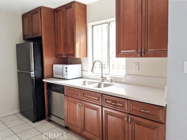 This townhouse is located within a gated complex with 18 total units. All bedrooms and two full bathrooms are on the top level. The main floor has the great room with chandelier, crown molding, recessed lighting, fireplace, half bath, and the kitchen. The kitchen features wood cabinetry, stainless steel appliances, soft-close drawers, and quartz countertops. There is plenty of storage and closet space in this home! Also, has a small private gated patio area included to enjoy gardening or relaxing. Spacious Garage is attached, on lowest level, with two parking spots, and laundry washer/dryer included! Conveniently located near CSUN, close to the 405, 118, and 5 freeways.