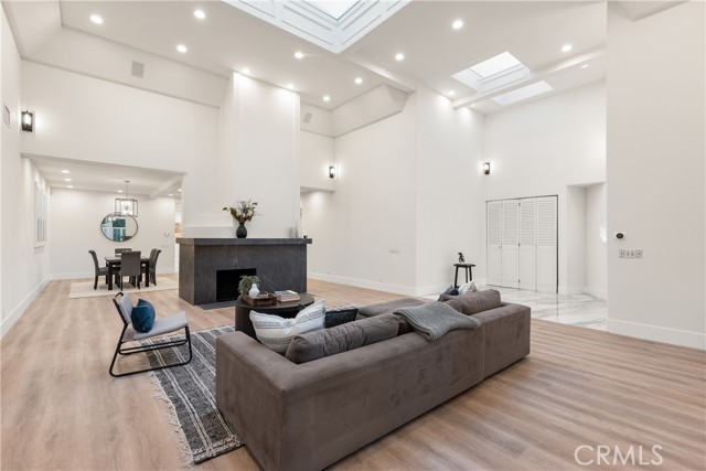 Welcome to 14713 Valleyheart Drive - where modern sophistication harmonizes with the timeless charm of Sherman Oaks. This exceptional residence offers 5 bedrooms, 3.5 baths, and over 5,000 square feet of refined living space, set on an 8,816-square-foot lot. Step inside to discover soaring ceilings, exposed wood beams, and an abundance of natural light cascading through a dramatic skylight. Completely reimagined, the home now showcases a modern open-concept design, curated with designer details and exquisite finishes throughout. Anchoring the main living area, a striking double-sided charcoal porcelain fireplace seamlessly connects the living and dining spaces, setting the tone for both comfort and sophistication. The chef’s kitchen is a true showpiece, featuring state-of-the-art Sub-Zero and Wolf appliances, a marble backsplash, an expansive center island, and an inviting breakfast nook perfect for morning gatherings. The primary suite is a private retreat - complete with its own skylight, fireplace, walk-in closet, spa-inspired bath, and a serene balcony overlooking the backyard. Step outside to your personal oasis: a sparkling pool, relaxing jacuzzi, and built-in BBQ, all designed for effortless entertaining and California living. A recently converted 900-square-foot basement adds an impressive entertainment area, ideal for a media room, gym, or play space. Perfectly located near Ventura Boulevard, fine dining, and shopping, within the sought-after Kester Avenue Elementary School District, this home embodies convenience and contemporary luxury.