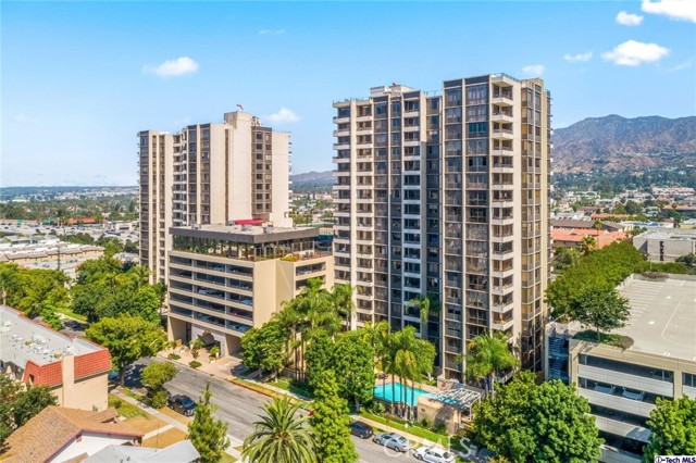 Luxury high rise Park Towers condo in Downtown Glendale. This desirable 5th floor unit offers serene treetop views with a stunning DTLA backdrop. Sophisticated, effortlessly stylish, renovated to perfection with thoughtful design elements, modern finishes and exceptional attention to detail throughout. Open concept floor plan incorporates chefs kitchen and breakfast nook area, elegant living room with wet bar and dining area, view balcony. The privacy of separate bedroom wing and the formality of gracious entertainment areas set this modern flat apart from the ordinary. Spacious Primary suite is offering a serene retreat with wall-to-wall view windows, complemented by walk-in closet connection and luxurious spa-inspired en-suite bath with walk-in glass shower, dual vanities and refined modern finishes. Two additional bedrooms are located in a separate wing and share a luxury bathroom and separate laundry room with the washer and dryer. 2- assigned parking spaces in gated, community garage area. Sophisticated amenities of luxury high rise include 24 hour concierge, gym, two swimming pools, two tennis courts, lush park-like landscaping, walking/jogging trail, redwood view sundecks, clubhouse with city views, BBQ area, gated guest parking. Located in in downtown Glendale, close distance to finest hot spots, Americana, Glendale Galleria, Whole Foods Market, restaurants on Brand. You will love fast and easy access to all of LA.
