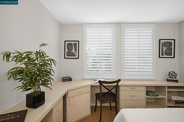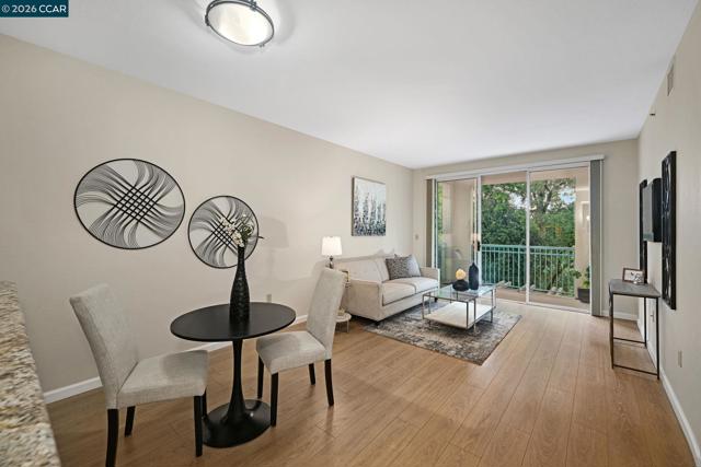 Discover this beautifully maintained one bedroom, one bath “Brookgreen” condo in the highly desired Waterford complex at Rossmoor. Ideally located on the second floor, this charming residence offers spacious living & dining areas that open to a private balcony with serene views of mature trees and lush greenery, perfect for relaxing in a peaceful setting. The unit features freshly painted interior and elegant engineered hardwood flooring throughout, granite countertops, new microwave & light fixtures, Duette Vertiglide shades with blackout and sheer panels, along with wood plantation shutters, all which add both comfort and style. The generously sized bedroom includes built-in cabinetry and large windows that frame tranquil treetop views. An indoor laundry area with a brand new stackable washer and dryer adds everyday convenience. Additional highlights include a dedicated storage unit located down the hall and an assigned parking space#121, convenient near the North entrance/elevator. Residents of this adult 55+ independent living community enjoy exceptional Waterford amenities, including dining, weekly housekeeping, organized social activities, library & more plus full access to Rossmoor’s renowned gated community with indoor/outdoor pool, tennis, golf, fitness center & clubs.