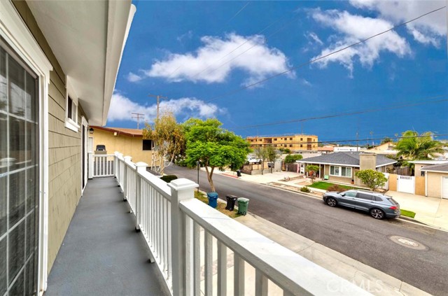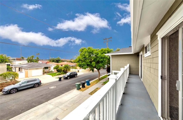 Nestled in a quiet and highly desirable Lomita neighborhood, this beautifully updated freestanding home has been thoughtfully remodeled throughout. Upgrades include LED lighting, laminate wood flooring on both levels (with new flooring and baseboards added upstairs in September 2024), ceiling fans with remote controls in every bedroom, louvered shutters on windows on the first floor. The kitchen is well-appointed with granite countertops, a breakfast bar, stainless steel double sinks, walk-in pantry, under-cabinet LED lighting, and stainless steel appliances, including a stove, dishwasher, and built-in microwave with exhaust fan. A first-floor bedroom opens to a paved patio that wraps around to another paved patio on the side of the house. Upstairs, the two front bedrooms feature a “Hollywood” layout with a shared full bathroom and dual sinks, and both bedrooms have access to the front balcony. The spacious primary bedroom offers a walk-in closet and an ensuite bathroom with dual sinks, a separate tub, and a shower. The second-floor laundry area is conveniently located near abundant storage cabinets and counter space. Additional highlights include a recent installation of new water heater in September 2024, central air conditioning for year-round comfort, and direct access to the garage from inside the home.