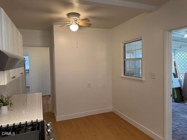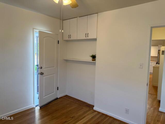 This inviting 2-bedroom, 1-bath house offers a comfortable and cozy living environment with no adjoining walls, ensuring added privacy. The home features newly refinished wood floors paired with modern laminate in the kitchen and bathroom. Upon entering, you'll step into a charming mud room that leads into a spacious living room filled with natural light.Adjacent to the living room is a welcoming dining room that provides a perfect space for meals and gatherings. The kitchen is a bright and airy area equipped with brand new appliances, including a stove, range hood, dishwasher, and refrigerator, making it a delight for anyone who loves cooking.Each bedroom is generously sized, with mirrored closets in one bedroom and ceiling fans for comfort in both. One bedroom offers convenient access to an enclosed yard featuring a cozy patio, perfect for relaxing or entertaining.Additionally, the kitchen conveniently leads to an enclosed utility room that includes new washer and dryer, providing extra storage and laundry space. For parking convenience, there are two assigned spaces available.Water and trash services are included in the rental, while pets and smoking are not permitted. This cozy home is an ideal sanctuary for those seeking comfort and convenience in a peaceful setting.