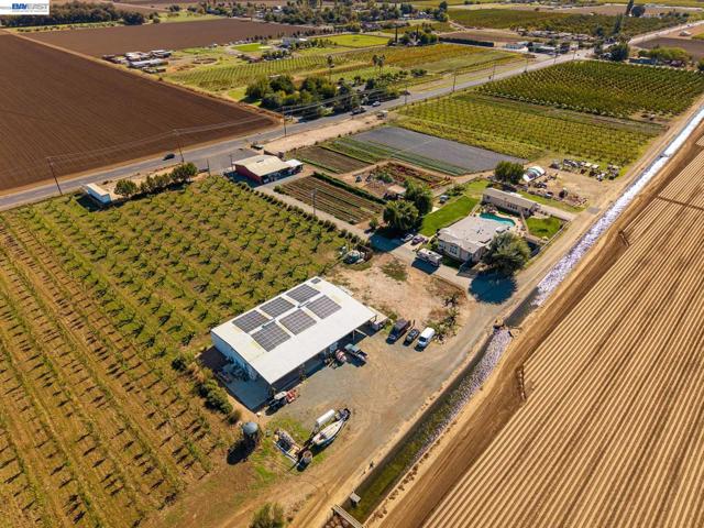 Welcome to an extraordinary opportunity in the heart of Brentwood—where country living meets thriving business potential. This stunning 34-acre ranch and working farm offers the perfect blend of lifestyle, income, and endless possibilities. The property features two well-appointed homes. The main residence boasts 2,565 Sq Ft 4 spacious bedrooms and 2 bathrooms, highlighted by soaring high ceilings that create an open, airy feel throughout. Step outside to your own private oasis with a beautiful swimming pool—perfect for relaxing or entertaining under the California sun. The second home offers 1,000 Sq Ft 2 bedrooms, 2 bathrooms, plus a versatile office space, ideal for extended family, guests, or rental income. This expansive farm is rich with a diverse and productive harvest, including peaches, nectarines, leafy greens, vegetables, avocados, asparagus, plums, figs, citrus, grapes, pomegranates, and more. Whether you're continuing the current agricultural operations or expanding into new ventures, the land is primed for success. Adding to its incredible value, the property includes a charming storefront open six days a week, inviting the community to enjoy fresh, locally grown produce. A 5,000-square-foot solar-powered building currently operates as a winery.