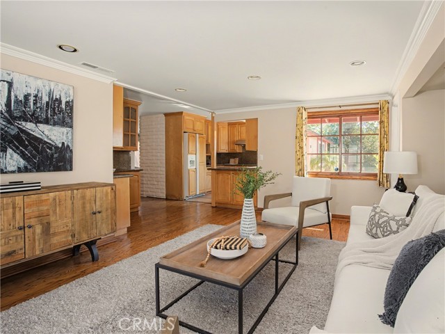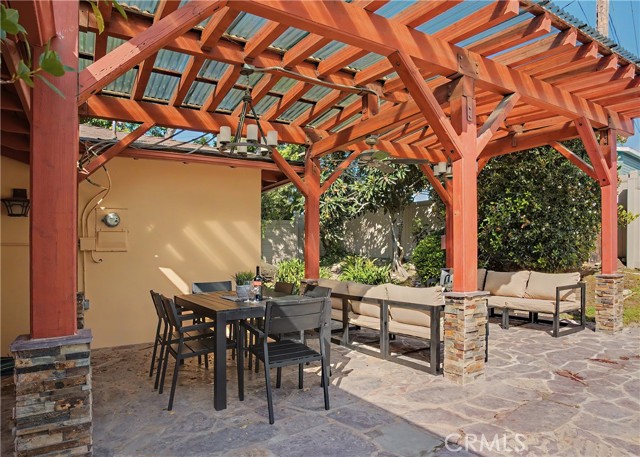 Beautifully updated turn-key spacious single level home with 4 bedrooms, 3 baths, and Living/Dining and Family areas. The home has hardwood floors, crown molding, granite counters and double pane windows/doors throughout for a sunlit, natural ambience. It’s efficient layout is designed to enjoy flowing indoor/outdoor living. Enter into the Living/Dining room that opens to French doors to a custom-built backyard entertaining area with a huge slate patio, barbecue station to put your own appliance, and large covered pergola with lights, fan, and new privacy vinyl fence. A full glass wall in the Living Room/Dining area overlooks the patio and completes the indoor/outdoor feeling. Sunny Kitchen with granite counters, breakfast bar, breakfast nook area, wood cabinetry, built-in fridge and new flooring. Family Room off the kitchen opens to a sunny and private brick patio. Large Primary Suite with an entire wall of built-in closets/cabinets and primary bath with walk-in shower. Of the 3 additional bedrooms, 2 are primary-size bedrooms. The large rear-bedroom opens onto the slate patio through a new 8-feet double-paned sliding door. The whimsical fourth bedroom is perfect for a child's room or a home-office, and opens to the private brick patio. All 3 bathrooms are updated, with granite counters, and one with a double sink. The two-car finished garage off the Family Room with built-in cabinetry could be flex room for exercise, office, game room, etc. Laundry area is located here. This home has great curb-appeal with new paint in and out, a new roof, newly refinished wood floors, granite resealed & polished, new dishwasher, and newly landscaped front yard. Award winning Palos Verdes schools. Centrally located within walking distance to Silver Spur Elementary School, Palos Verdes Peninsula High School and Peninsula Shopping Center. Harbor and city lights view from Driveway and Garage.