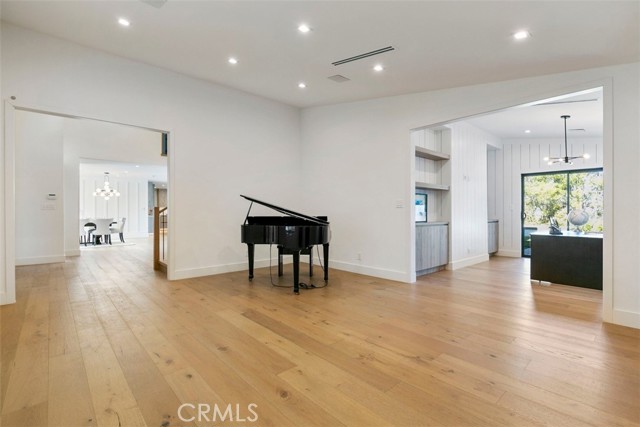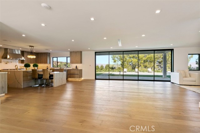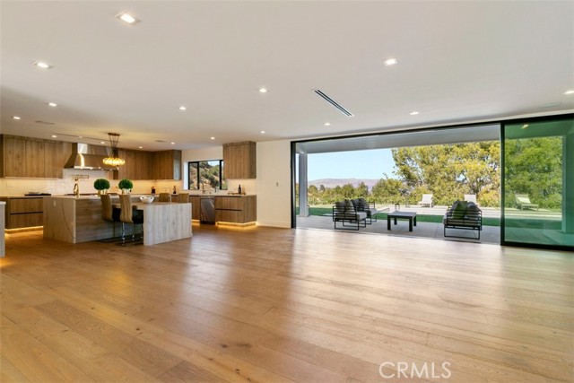Stunning modern farmhouse, fully rebuilt in 2018, located south of the Boulevard on one of Encino’s most private and sought-after streets. This exceptional residence offers approximately 5,400 square feet of thoughtfully designed living space, featuring 6 bedrooms, 5.5 bathrooms, a library, private theater, and a fully equipped outdoor kitchen. Upon entry, soaring 20-foot ceilings create a dramatic sense of scale and openness. The main level showcases a seamless open-concept layout, where the kitchen, dining area, and family room flow effortlessly—ideal for both everyday living and entertaining. Two bedrooms are conveniently located on the main floor, with four additional bedrooms upstairs, all generously sized and en suite. The expansive primary suite is a true retreat, offering breathtaking views, dual oversized walk-in closets, and a beautifully appointed spa-like bathroom. The resort-style backyard features a large swimmer’s pool, spa, and outdoor kitchen, all set against panoramic city light and sweeping valley views. This home delivers privacy, scale, views, and modern comfort—an exceptional opportunity in one of Encino’s premier locations.