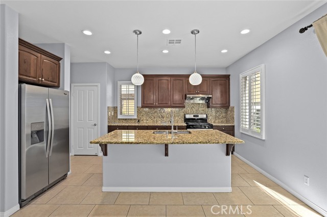 Bright and inviting DETACHED two-story home located in the highly desirable Portola Springs community. This modern 3-bedroom, 2.5-bath residence offers a spacious, light-filled open floor plan, complemented by a lovely rose garden and a private, low-maintenance backyard. The home features custom interior paint, LED recessed lighting, and hard-surface flooring throughout with no carpet. The living area flows seamlessly into the kitchen through a large sliding door. Thoughtful upgrades include tile flooring on the first level, laminate wood flooring upstairs, designer light fixtures, built-in cabinetry, and wood shutters. The remodeled kitchen boasts granite countertops, stainless steel appliances, an oversized island, and ample prep space. The generous primary suite includes a walk-in closet with custom built-ins, a ceiling fan, and wood shutters, while the en-suite bath offers dual vanities, a separate shower, and a soaking tub. Secondary bedrooms come with brand-new window blinds. A convenient second-floor laundry room and an attached two-car garage with a full wall of built-in storage add to the home's functionality. Refrigerator, washer, and dryer are included. Located near top-rated schools, including Portola Springs Elementary, Portola High, and close to multiple parks, shopping centers, dining, and outdoor destinations. No smoking. Move-in ready and impeccably maintained.