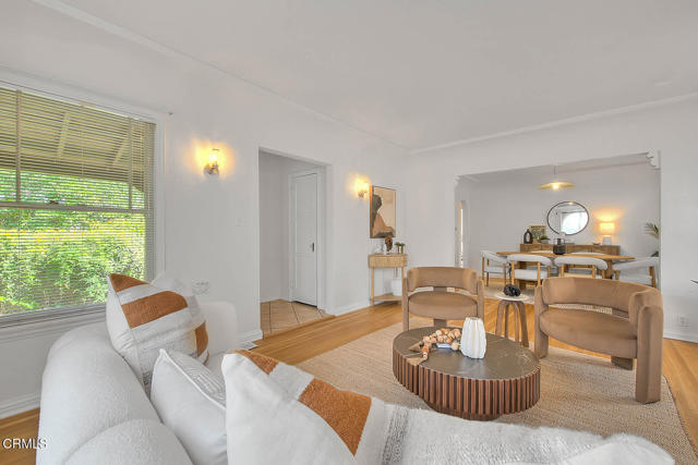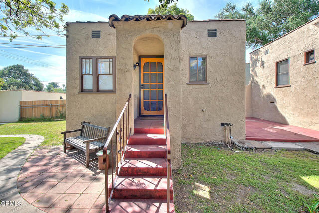 Step into timeless elegance with this classic Spanish residence, complete with a separate guest house, ideally situated on one of Pasadena's most iconic streets.Beyond a gated entry, a charming front patio sets the tone--perfectly suited for a bistro table and morning coffee. Inside, the expansive living room is a true showpiece, anchored by a dramatic floor-to-ceiling arched picture window framing breathtaking views of the San Gabriel Mountains. A stately decorative fireplace, coved ceilings, and newly installed sconces enhance the home's warm, sophisticated ambiance.The formal dining room impresses with elegant corbels and continued coved ceilings, creating a refined setting for entertaining. The kitchen blends classic character with functionality, featuring granite countertops, rich wood cabinetry, and recessed lighting. Just beyond, a generous office space offers an ideal work-from-home environment. An arched passage leads to a thoughtfully detailed hallway highlighted by a charming niche. Both bedrooms are filled with natural light from dual exposures and are finished with crown molding. The bathroom retains its classic appeal with a separate tub and shower, complemented by an arched niche.Throughout the home, freshly refinished wood floors and newly painted interiors create a bright, cohesive feel. Outdoors, a spacious patio with a curved back wall invites al fresco dining and relaxed gatherings.The permitted Spanish-style guest studio offers exceptional flexibility. Complete with a covered porch, decorative Aztec-inspired fireplace, multiple character windows, art deco seashell sconces, full kitchen, and bath, it is ideal for guests, extended family, or rental income. It is separately metered for convenience. The expansive backyard features a second patio for entertaining, mature avocado tree, storage shed, and excellent potential for an additional ADU. A two-car garage, along with two uncovered parking spaces, completes this versatile property--offering a rare opportunity to enjoy classic Pasadena architecture with modern-day possibilities.