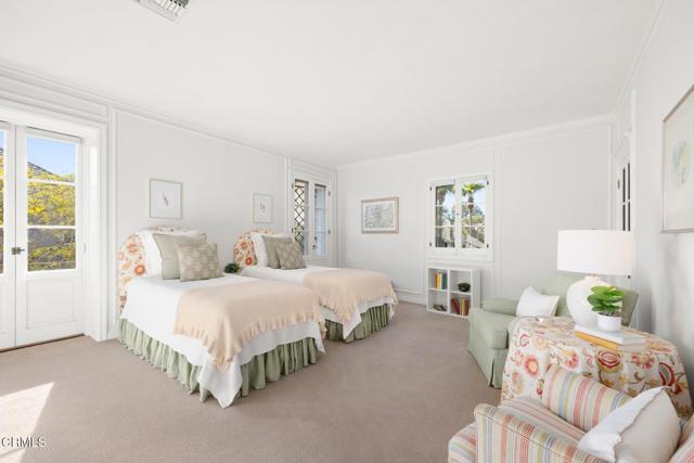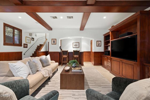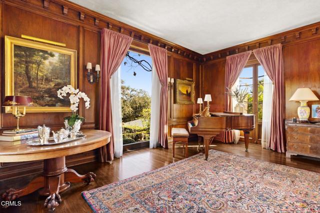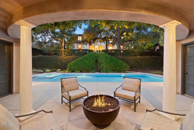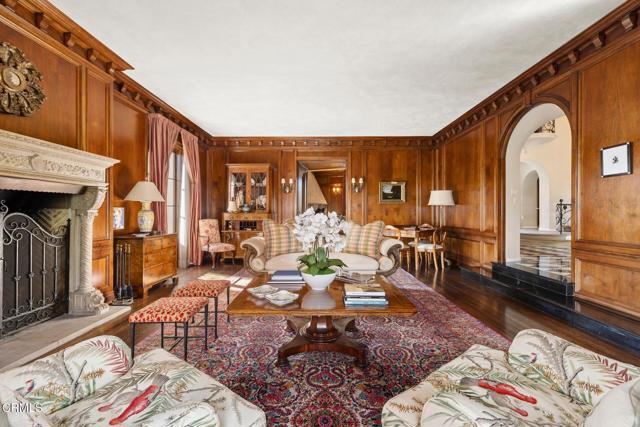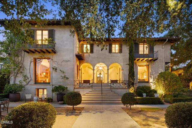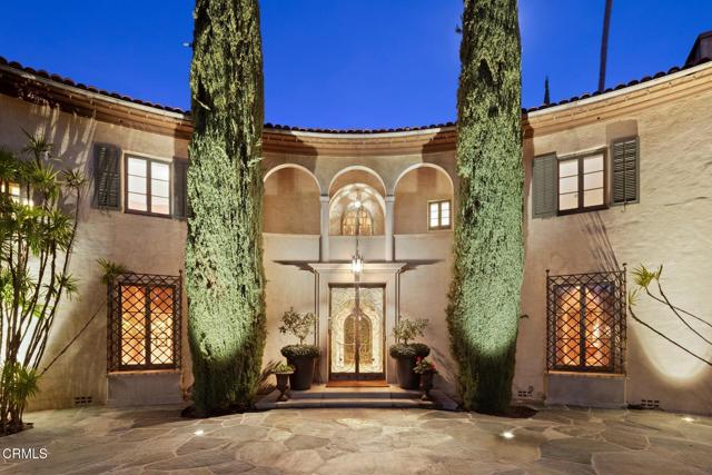 ---Wallace Neff Estate on over 1 Acre in the Langham/Oak Knoll District---Designed in 1928 by noted architect Wallace Neff, this exceptional estate is located in Pasadena's prestigious Langham district and set on approximately one acre of landscaped, terraced grounds. Commissioned by Adolphus and Lilly Anheuser Busch, for their granddaughter, Mrs. Sidney Berg, the property reflects classic architectural detail combined with thoughtful modern updates. A dramatic two-story oval entry hall features black-and-white Belgian marble floors, original ironwork, and an antique chandelier believed to be original to the home. Formal living and dining rooms, along with a Honduran mahogany-paneled library, offer generous scale, 12-foot ceilings, and direct access to gardens, terraces, and pool. The residence includes six bedrooms, most with en-suite baths, including a primary suite with dual marble bathrooms and dressing areas. Additional features include a butler's pantry, utility elevator, and a circular motor court with three-car garage. The home has been extensively updated over time under the direction of architect David Serrurier, including a renovated kitchen with Carrara marble counters, Wolf range, and Sub-Zero appliances; updated bathrooms; reconfigured living spaces; and improvements and upgrades to major systems. Grounds are designed for privacy and entertaining with multiple terraces, mature cypress trees, rose gardens, citrus plantings, and outdoor living areas. Amenities include a built-in BBQ kitchen, outdoor fireplace, play sport court, and a renovated pool and spa with a dedicated pool house/cabana featuring a kitchen, bath and dressing rooms. A rare offering combining architectural pedigree, expansive grounds, and modern livability in one of Pasadena's most sought-after neighborhoods.