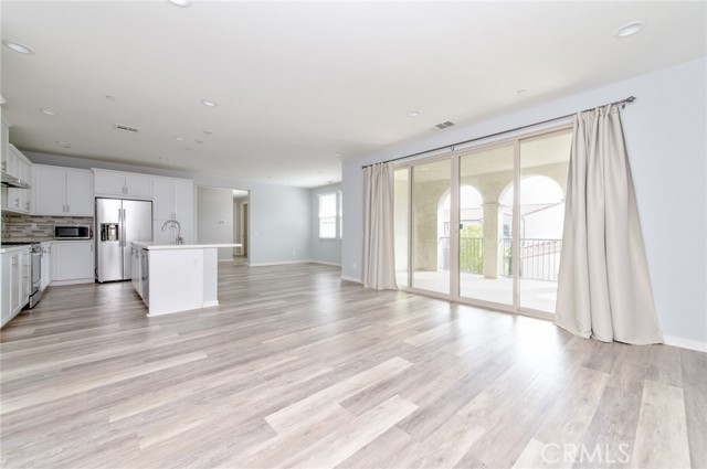 This 2-bedroom, 2.5-bath home is located in the desirable Portola Springs community.The home features a spacious living room with an open layout connecting the kitchen and dining area, creating a comfortable and functional living space. A standout feature is the oversized covered balcony, offering an ideal extension of the living area for outdoor living. The interior showcases laminate wood flooring throughout the home, including the stairs, creating a clean and cohesive look. The kitchen is well-appointed, and the home comes complete with refrigerator, washer, and dryer included. The primary suite features a walk-in closet and a walk-in shower, providing both comfort and functionality. Additional highlights include a two-car attached garage and a thoughtfully designed floor plan with good separation between living and sleeping areas. Located in Portola Springs, the home offers close proximity to parks, walking trails, and community amenities in a quiet and well-maintained neighborhood.