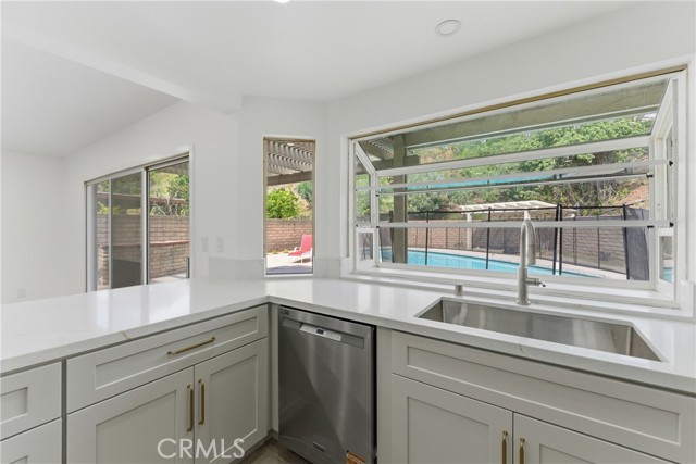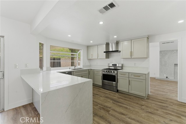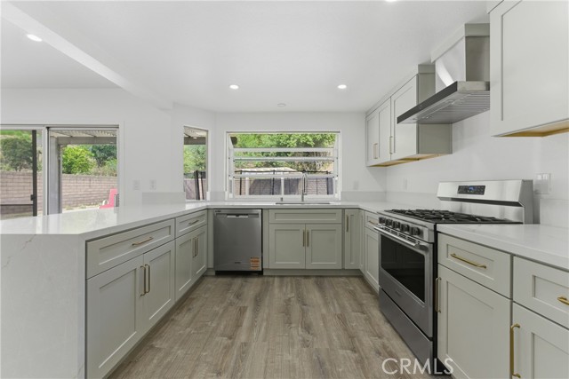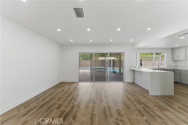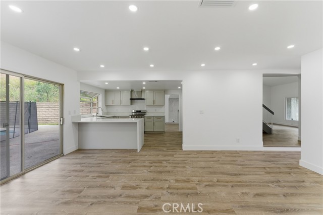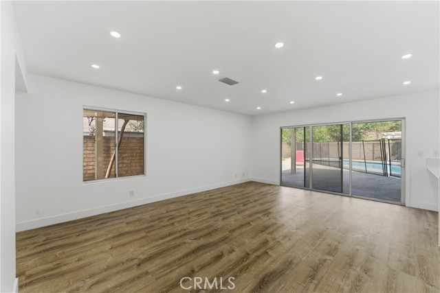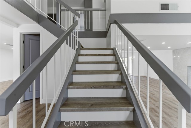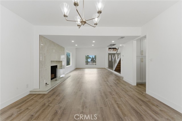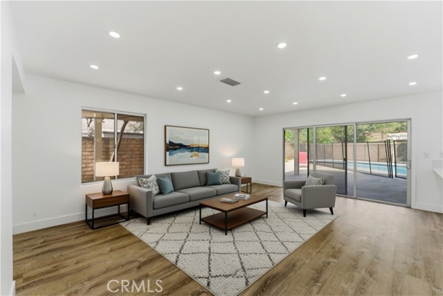 Welcome to this beautifully upgraded, centrally located home in Montebello, nestled in a desirable residential neighborhood and offering the perfect blend of modern living and resort-style comfort. Step inside to a bright, open-concept layout featuring wide plank flooring, recessed lighting throughout, and a spacious living area with a sleek modern fireplace—perfect for relaxing or entertaining. The fully remodeled kitchen is a standout, showcasing quartz countertops, custom cabinetry, stainless steel appliances, and a large peninsula with bar seating. Upstairs and downstairs living areas provide flexibility for families, remote work, or entertaining guests, while large windows bring in an abundance of natural light. Step outside to your private backyard oasis, complete with a sparkling pool, safety fencing, and covered patio areas ideal for year-round Southern California living.