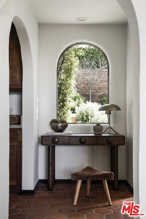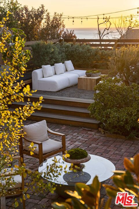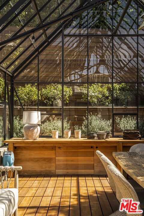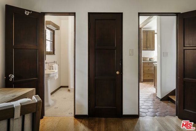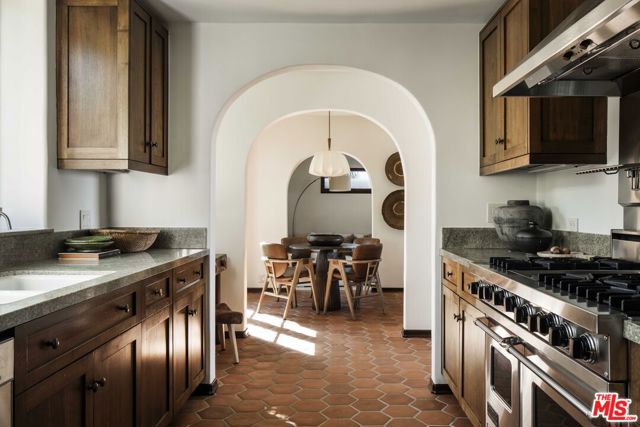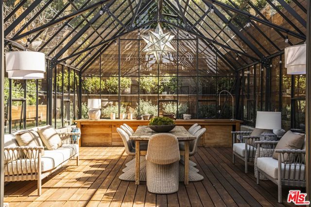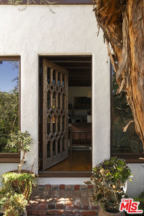 In Castellammare, envisioned in the 1920s as a coastal enclave reminiscent of the Italian Riviera, 216 Notteargenta stands as a lasting expression of that original vision. As one of the first homes to be built, this storied yet updated residence is thoughtfully perched above the street and reflects a different time- much like the neighborhood's winding, Italian-named streets. This one-of-a-kind Spanish Colonial home offers a rare combination of history, privacy, and SWEEPING VISTAS that extend across the Santa Monica Mountains to the Pacific Ocean and Catalina Island. ***The arrival unfolds as you pass through vintage wood entry gates and beautiful gardens, stepping into an expansive brick courtyard that serves as a true outdoor room, framed by the home's formal interiors. A sitting deck affords views back to the home as well as across the verdant Santa Monica Mountains, creating a setting equally suited for entertaining or quiet enjoyment. ***Inside, the architecture unfolds as the entryway introduces the home's heritage. Beyond, a step-down family room features preserved beams and is filled with natural light, anchored by an original fireplace and lined with French and picture windows that frame garden views. Arched openings guide you from room to room, leading to a dining space that feels both intimate and connected. The fully updated kitchen and breakfast nook, with warm wood cabinetry, gourmet appliances, and terracotta tile floors, offer a timeless, understated elegance, while a more relaxed and spacious den provides a comfortable retreat with access to both the front and rear gardens. The entry level also features an office or bedroom suite and a laundry pantry. ***Ascend the stairwell with its original wrought iron railing and to the primary suite where French doors and windows preview the views beyond. Two private balconies offer remarkable vantage points overlooking the home, the front courtyard, the layered rear gardens, and outward to the coastline and mountains- a perspective that evokes the Amalfi Coast. Two secondary bedrooms, one with ocean views and its own balcony, complete the upper level. ***The rear grounds offer an entirely different and almost unexpected experience. Gently terraced with a sense of the Italian countryside, the backyard is composed of pathways, stone walls, mature plantings, and numerous fruit trees. At its center, a striking glass greenhouse serves as both focal point and experience. This light-filled space is equally suited for daytime gatherings or magical evening entertaining under a canopy of stars and warm ambient light, creating a setting that is as memorable as it is unique. ***Throughout, the home balances romance and restraint, honoring its architectural roots through details such as vintage hardware, light fixtures, and woodwork. Thoughtfully updated, it embraces a way of living that feels both elevated and distinctly Pacific Palisades. This is truly a unique and rare offering where history, setting, and a unique lifestyle that is the Pacific Palisades, come together in a way that must be experienced to be fully appreciated.