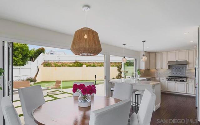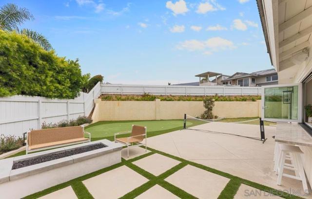 Magnificent ocean view beach home in the heart of Solana Beach, offering an open floor plan with 4 bedrooms, a 3 car garage plus additional parking spaces, and a spacious backyard designed for effortless coastal living. Charming Dutch Front door! The outdoor setting features a built in barbecue, large fire pit, putting green, lush grass area ideal for activities like soccer or football, and an in-ground trampoline, all complemented by bi fold doors and large windows that create a seamless indoor outdoor experience for entertaining. Enjoy ocean views and light breezes from the main living room, front yard and primary bedroom! Just a short stroll to the sandy beaches, the renowned Cedros Design District, dining, top rated schools, and the train depot, this is a rare opportunity to enjoy the best of coastal luxury living.