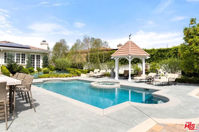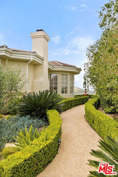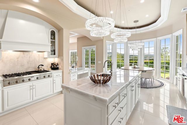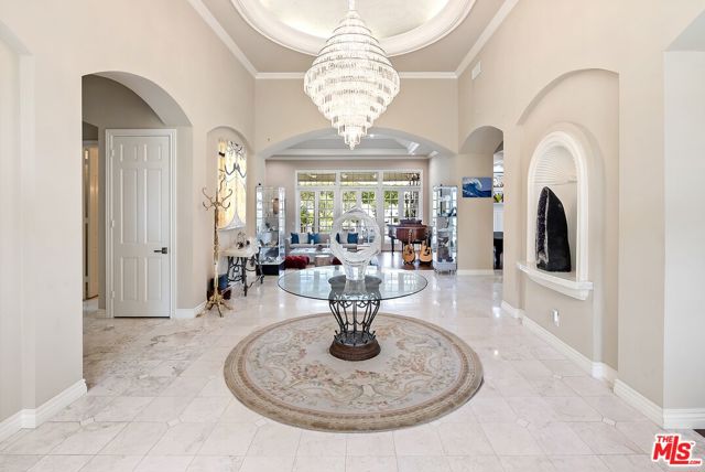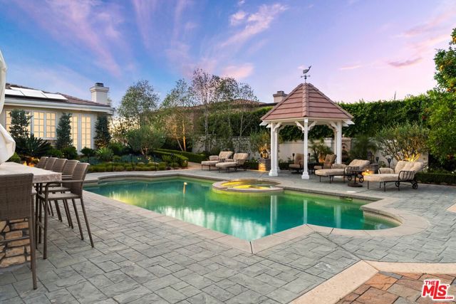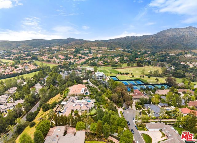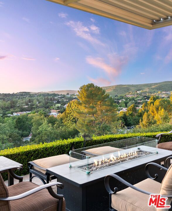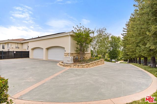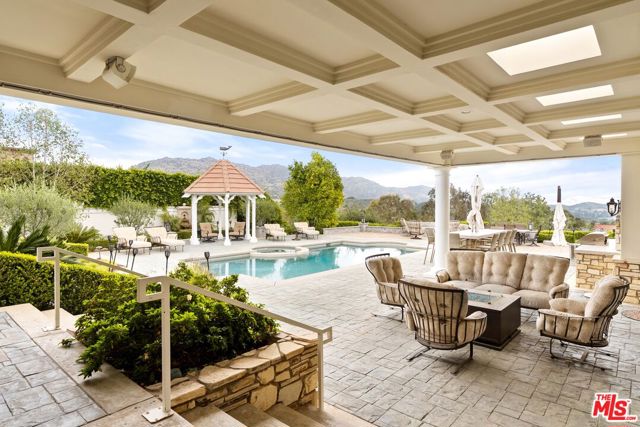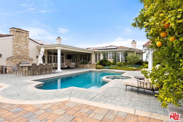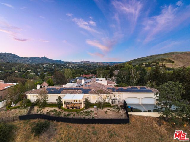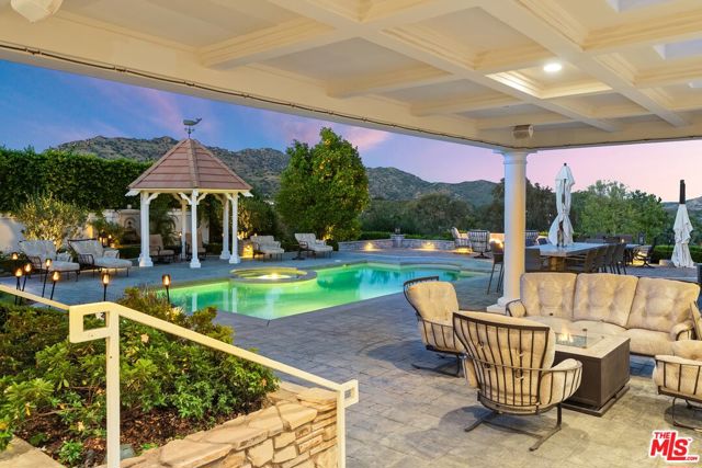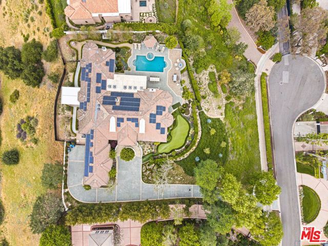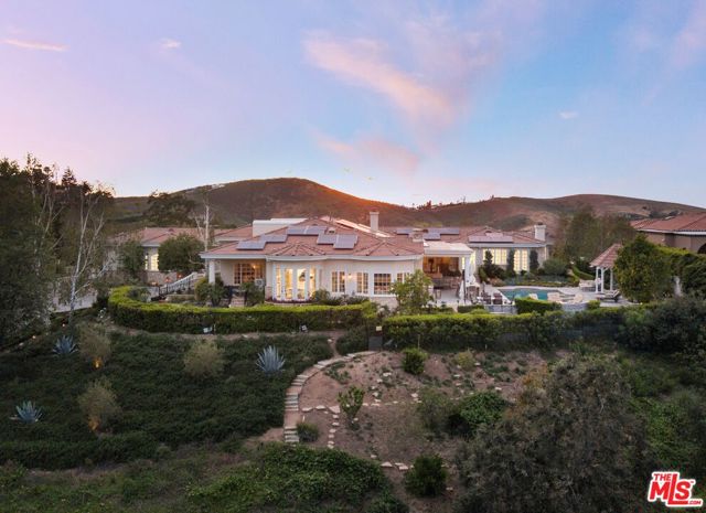 North Ranch Private Promontory. Single level. Thoughtfully reimagined. Tucked behind it's own gates atop a rare 1.67-acre hilltop, this North Ranch estate sits high above the street, privately situated from its elevated vantage point, the residence captures both sunrise and sunset horizons, an everyday balance of seclusion and openness just moments from North Ranch Country Club. As you ascend the drive, the home reveals itself with quiet confidence. You pass the welcoming front entry and continue toward the west-facing garage, discreetly positioned to preserve both symmetry and privacy. Through the front door, a light-filled foyer opens the experience, formal living ahead, library/office to the left, detailed with rich wood bookcases, cabinetry and paneling, coffered ceiling and leaded glass. To the right, the formal dining room connects through a butler's pantry to the kitchen, designed for both beauty and function. The chef's kitchen anchors the home's entertaining spaces with Cristallo quartzite surfaces, four ovens, dual Sub-Zero refrigeration, and dual dishwashers. Flow continues effortlessly into the family room and a striking backlit bar, forming a cohesive gathering environment defined by texture, proportion, and light.The primary suite offers a calm retreat with a spa-inspired bath featuring a steam shower, soaking tub, and custom cabinetry. Secondary bedrooms extend along the private hall, each balancing comfort and openness with thoughtful separation from public spaces.Outdoors, the estate unfolds in scale and intention, expansive and multiple covered sitting areas create generous entertaining zones on both sunrise and sunset sides of the property. The landscape is layered for gathering and retreat, featuring generously sized pool and spa, built-in BBQ, flowing pond, 2 natural gas fire pits (sunrise side and sunset side), and an oversized putting and chipping green surrounded by mature greenery. Substantial infrastructure upgrades complete the property, including 107 owned solar panels, new roof, whole-home backup generator, extensive security systems, keypad access, and dual EV charging in the garage. Elevated. Private. Architectural. A single-level North Ranch estate reimagined for modern California living.