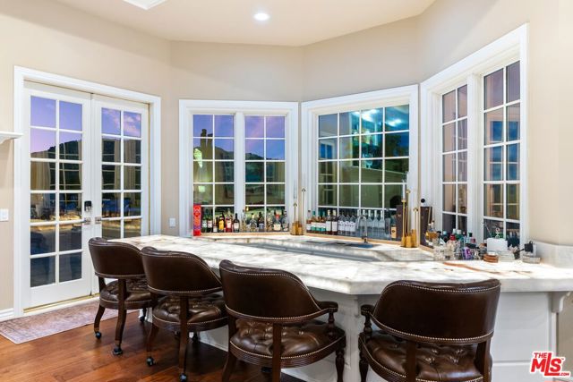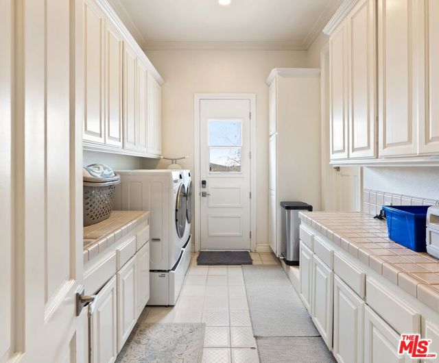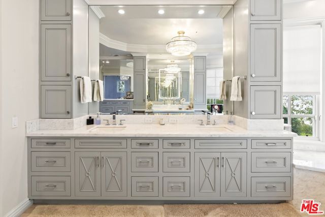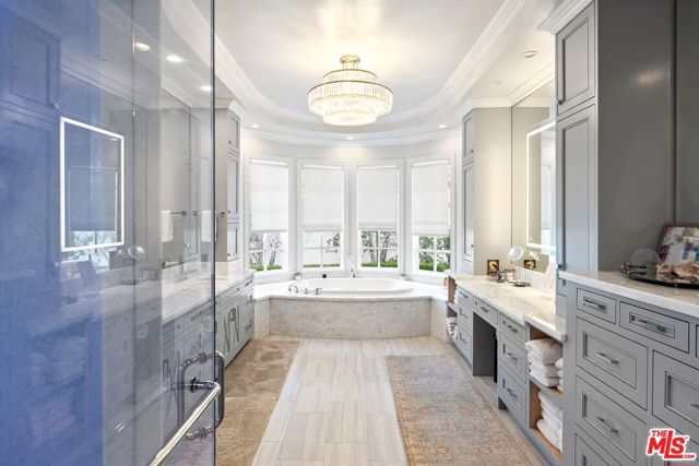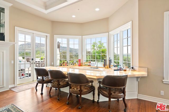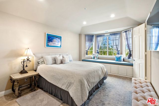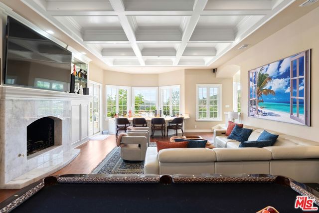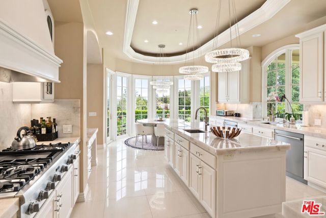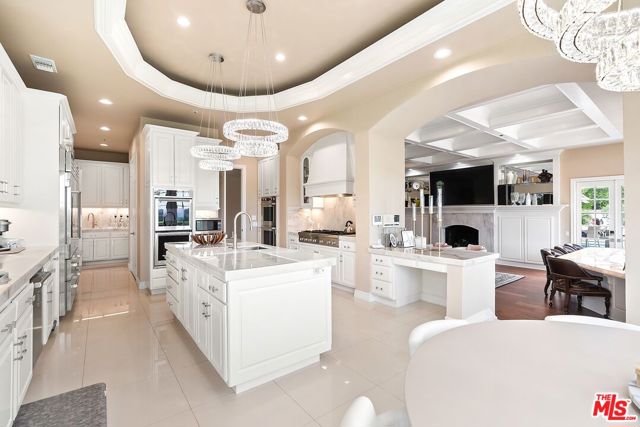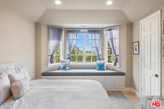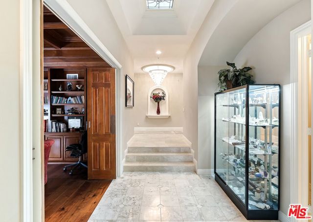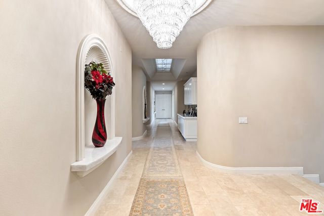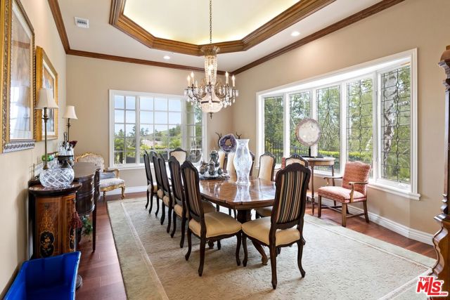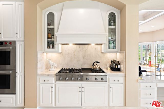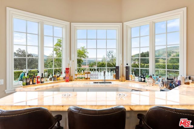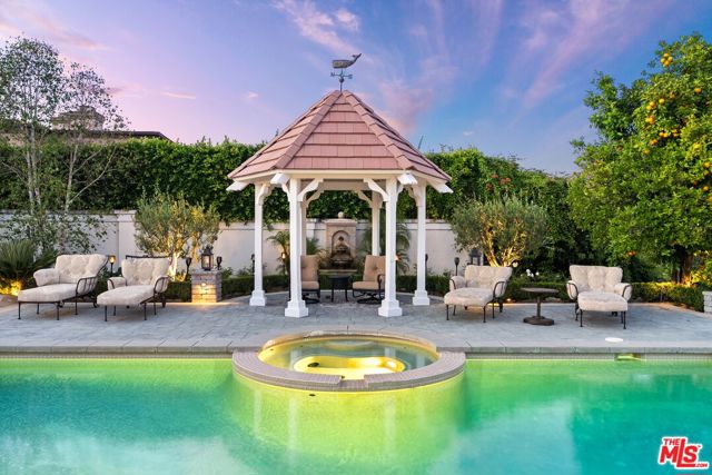 North Ranch Private Promontory. Single level. Thoughtfully reimagined. Tucked behind it's own gates atop a rare 1.67-acre hilltop, this North Ranch estate sits high above the street, privately situated from its elevated vantage point, the residence captures both sunrise and sunset horizons, an everyday balance of seclusion and openness just moments from North Ranch Country Club. As you ascend the drive, the home reveals itself with quiet confidence. You pass the welcoming front entry and continue toward the west-facing garage, discreetly positioned to preserve both symmetry and privacy. Through the front door, a light-filled foyer opens the experience, formal living ahead, library/office to the left, detailed with rich wood bookcases, cabinetry and paneling, coffered ceiling and leaded glass. To the right, the formal dining room connects through a butler's pantry to the kitchen, designed for both beauty and function. The chef's kitchen anchors the home's entertaining spaces with Cristallo quartzite surfaces, four ovens, dual Sub-Zero refrigeration, and dual dishwashers. Flow continues effortlessly into the family room and a striking backlit bar, forming a cohesive gathering environment defined by texture, proportion, and light.The primary suite offers a calm retreat with a spa-inspired bath featuring a steam shower, soaking tub, and custom cabinetry. Secondary bedrooms extend along the private hall, each balancing comfort and openness with thoughtful separation from public spaces.Outdoors, the estate unfolds in scale and intention, expansive and multiple covered sitting areas create generous entertaining zones on both sunrise and sunset sides of the property. The landscape is layered for gathering and retreat, featuring generously sized pool and spa, built-in BBQ, flowing pond, 2 natural gas fire pits (sunrise side and sunset side), and an oversized putting and chipping green surrounded by mature greenery. Substantial infrastructure upgrades complete the property, including 107 owned solar panels, new roof, whole-home backup generator, extensive security systems, keypad access, and dual EV charging in the garage. Elevated. Private. Architectural. A single-level North Ranch estate reimagined for modern California living.