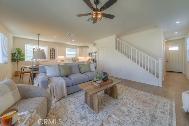 Address to The Cottages is 12665 4th Street, Yucaipa CA 92399. ** Welcome to The Cottages at 4th, a charming NEW HOME community in the City of Yucaipa. Plan 1 features 1,860 sq. ft., 3 bedrooms, 2.5 bathrooms, and a spacious loft in a thoughtfully designed two-story floor plan. The open-concept layout includes a bright great room, an 8-foot sliding glass door to the backyard, and a beautifully appointed kitchen with real wood soft-close cabinetry, quartz countertops, and stainless-steel appliances. Upstairs, the primary suite offers a large walk-in closet and a well-appointed bath with quartz counters and modern lighting. Notable features include included solar, spray foam insulation, LED lighting, EV charger pre-wire, luxury vinyl plank flooring on the first level and in baths, plush carpet in the bedrooms, black hardware finishes, front yard landscaping, and a 14' x 10' concrete backyard patio with options to expand. Situated in an intimate 15-home community, this new construction opportunity blends modern style and energy efficiency. ** Builder incentives available, including closing cost assistance, home upgrades, or a 2-1 buydown starting at 3.5% for year 1, subject to seller approval, lender guidelines, and change without notice.