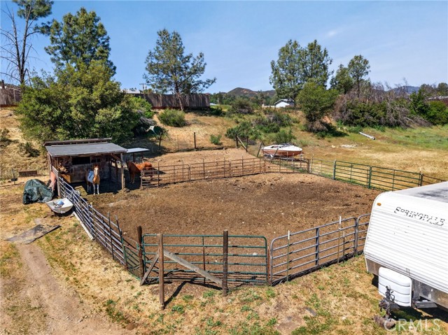 Welcome to the country! Horse friendly Spring Valley cutie! 3 bedroom, 2 bath home at the end of a cul-de-sac and not far from the creek, community camp ground and club house. This home features a galley style kitchen with a newer stove in 2025, slider to patio, breakfast nook, living room with cozy wood stove, 2 guest bedrooms, 1 guest bath, plus a primary bathroom and bedroom. Roof replaced in 2025, new exterior paint in 2026. All electric home. Outside is a fully fenced back yard, patio, chicken coops, raised beds, barn, horse corrals, and room for RV parking.