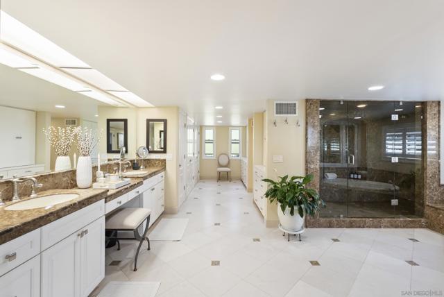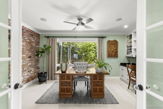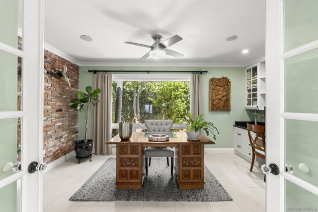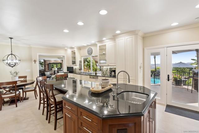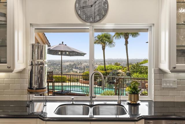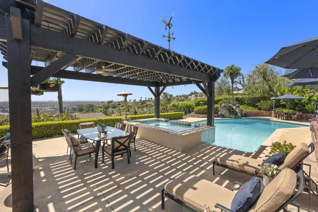 6525 Crystalaire Drive presents an exceedingly rare opportunity unlike anything else to hit the Del Cerro market. Spanning approximately 5,549 square feet on a sprawling 0.56-acre lot, this extraordinary single-story estate embodies a unique level of scale, privacy, and panoramic beauty seldom available. Thoughtfully designed for both grand-scale entertaining and comfortable everyday living, the home offers 5 bedrooms plus an office, expansive living areas, and a floor plan that balances openness with privacy. Walls of glass frame sweeping views throughout the residence, while soaring ceilings, rich architectural brick detailing, and multiple fireplaces bring warmth, substance, and timeless character to the interiors. The privately situated primary retreat offers a true sense of escape, featuring a sunken sitting room with fireplace, dual closets, and an expansive stone-clad bath with dual vanities, a makeup area, spa tub, and oversized shower. Outdoors, the resort-style grounds include a pool, elevated spa, outdoor kitchen, pergolas, expansive patios, fire pit lounge, large view deck, edible garden, and mature fruit trees. A temperature-controlled wine cellar with exterior access, outdoor sauna, beautifully landscaped grounds with extensive Simons brick, 54 owned solar panels, zoned heating and air conditioning, a 2-car garage, and abundant off-street parking further elevate the offering. Set on one of Del Cerro’s premier streets, this is a standout residence that delivers an exceptional blend of scale, craftsmanship, lifestyle, and views.