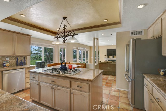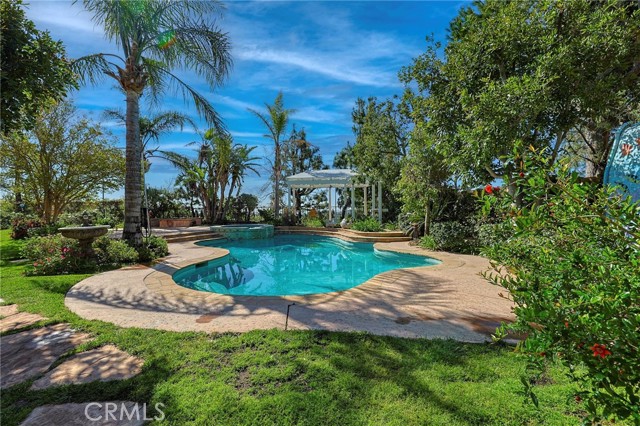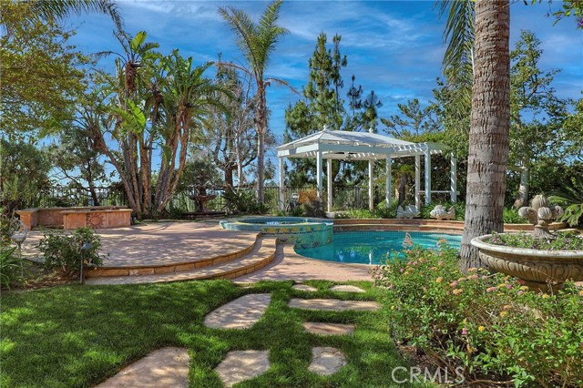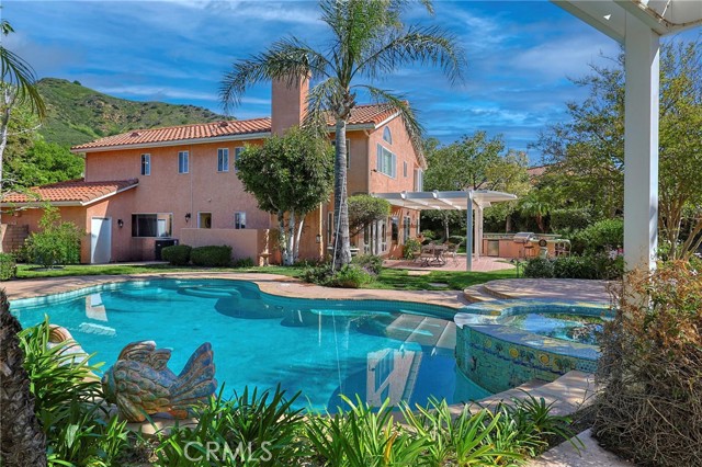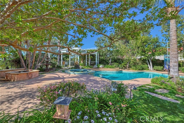Located in the prestigious Canyon Crest neighborhood, this stunning home sits on an expansive ~16,124 sq. ft. lot and offers one of the most breathtaking backyards imaginable—complete with a lagoon-style pool and spa, fire pit, inviting conversation area, gazebo, covered patio, and an outdoor kitchen with seating, all surrounded by lush landscaping with mature trees, fruit trees (lemon, fig, pomegranate, apricot, peach), and a thriving vegetable garden. A grand double-door entry with soaring vaulted ceilings welcomes you into a spacious living room and formal dining room, ideal for both everyday living and elegant entertaining, while the expansive island kitchen flows seamlessly into the family room with serene backyard views. The luxurious primary suite features vaulted ceilings, beautiful city light views, a spa-like en-suite bath with a separate tub and shower, and generous walk-in closets, and a convenient downstairs bedroom and bathroom make this home ideal for guests or multi-generational living. Additional upgrades include recently replaced A/C and heating systems for enhanced comfort and efficiency. Just a short walk to the HOA’s private dog park and scenic hiking trails leading to Mission Peak in O’Melveny Park, and located near top-rated schools, this home offers the perfect blend of lifestyle, comfort, and entertainment, while by night the backyard transforms into a magical retreat with accent lighting, fountains, a glowing pool and spa, and built-in surround sound—truly an entertainer’s dream.
