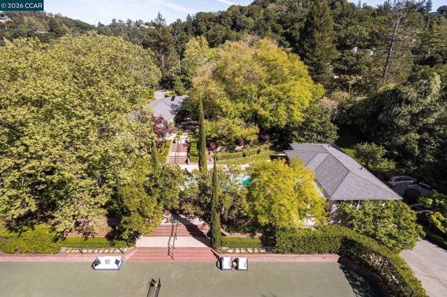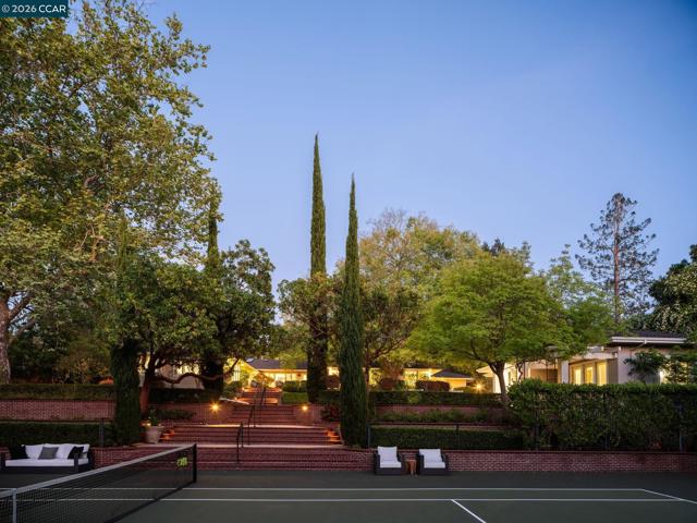 A Private World, Moments from Everything. Garden mornings, tennis afternoons, and evenings by the wine cellar await at this rare Sycamore Road property in Orinda. Set on 1.24 acres, this single level home features a main residence and a private one bedroom, one bath guest house, surrounded by mature landscaping, curated gardens, and fruit trees.Designed for both everyday living and elegant entertaining, the property offers seamless indoor outdoor flow with expansive grounds that invite gathering, recreation, and quiet retreat.A full size tennis court, pool, and wine cellar create a lifestyle rarely found in such a serene and private setting. Ample parking includes a circular driveway, an attached two car garage, and a detached one car garage behind a gate.Inside and out, the home reflects a timeless sensibility, unpretentious, refined, and deeply connected to its natural surroundings. Open spaces, abundant light, and thoughtful design make it equally suited for relaxed daily living or hosting on any scale.Private, timeless, and rarely available, this exceptional estate offers a unique opportunity to enjoy space, beauty, and convenience on one of Orinda’s most sought after streets.Close to top rated schools, Orinda Country Club, and commute.Addt'l details + floorplans 8SycamoreRd.
