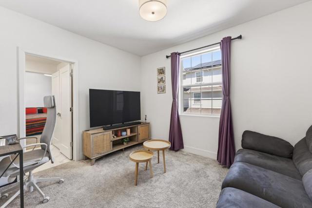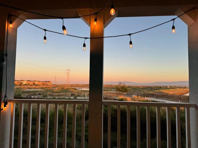Positioned in one of the most desirable and quiet locations within the Bridgeway community, this Lennar built townhome offers a rare blend of modern design and unobstructed natural surroundings. With no front neighbors and protected marsh and wetlands directly ahead, the home enjoys expansive views of open space and surrounding ridgelines, creating a peaceful and private setting. The main level features luxury vinyl plank flooring and a bright open concept layout connecting the kitchen, dining, and living areas. The kitchen includes a large island, granite countertops, stainless steel appliances, and a gas cooktop. A private patio offers outdoor space to relax and enjoy the setting. Upstairs, two secondary bedrooms share a Jack and Jill bathroom. The primary suite is positioned to capture the views and features a private balcony, dual vanities, soaking tub, separate shower, and a walk in closet. Additional features include a side by side two car garage, tankless water heater, solar, and EV charger readiness. Residents enjoy access to a community clubhouse, pool, and outdoor firepit areas, completing a setting that blends modern living with a quiet, connected outdoor lifestyle. A rare opportunity to own one of the best positioned homes in the community.