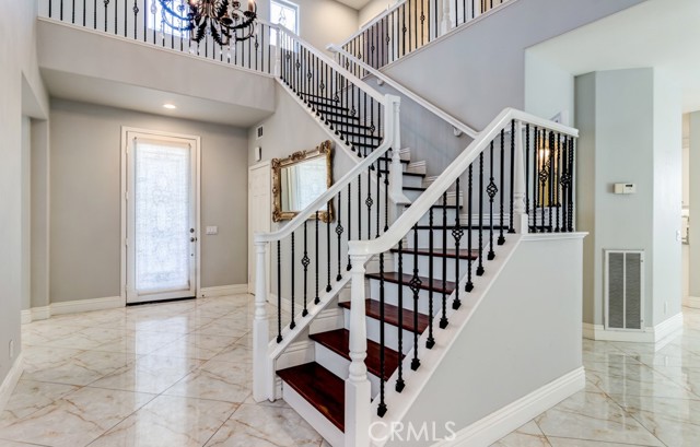 This exceptional single-family detached residence is located within the highly sought-after gated community of Oak Creek in Irvine. Beautifully upgraded throughout, the home showcases custom interior finishes and an abundance of natural light. A custom front door opens to a dramatic formal entry, setting the tone for the elegant interior. The main level features a versatile bedroom, formal living and dining rooms, and a spacious family room with a cozy fireplace. The gourmet kitchen is thoughtfully designed with a large center island with seating, granite countertops, a farmhouse sink, a double gas oven, a drawer microwave, and custom cabinetry featuring decorative glass and mirror accents. An additional casual dining area completes this inviting space. Notable upgrades include plantation shutters, stained glass accents, and designer lighting fixtures. Additional highlights include an interior laundry room, an attached two-car garage, and an extended driveway. Step outside to a generously sized backyard ideal for entertaining, featuring a built-in BBQ island, fire pit, covered patio, and mature fruit trees. Upstairs, Bedroom 4 offers flexible use as an office, guest room, or bonus space. The spacious primary suite boasts soaring ceilings, a large walk-in closet, and a luxurious en-suite bath with dual sinks, Carrara marble countertops, a soaking tub, and a walk-in shower. Secondary bathrooms are also elegantly upgraded. Residents enjoy resort-style community amenities, including an 11-acre park, two pools, tennis courts, basketball and volleyball courts, clubhouse, and spa. Conveniently located near the 405 Freeway, Oak Creek Elementary School, and the Irvine Spectrum, this home offers the perfect blend of luxury, comfort, and prime location. --