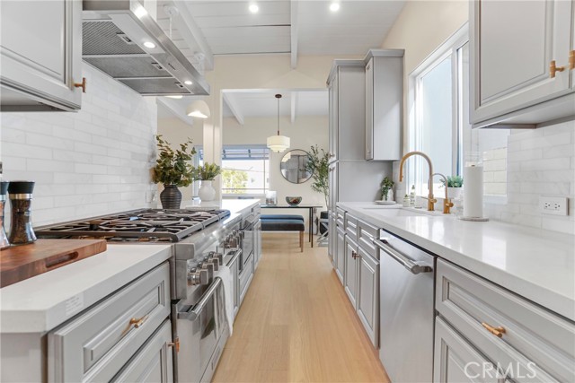 New to market in the coveted Tree Section of Manhattan Beach, Just minutes away from the beach, shopping and LAX. This beautifully renovated home is perched above the street, offering exceptional privacy and seamless indoor-outdoor living. Featuring 3 bedrooms and 3 stylishly updated baths, the flexible floor plan includes a formal living room and a spacious family room. The updated kitchen opens to the living and dining areas and features a breakfast bar, creating a bright, connected space for everyday living and entertaining. Designer finishes of all lighting, plumbing fixtures, cabinets, counters and flooring. French doors in the family room fully open to the oversized backyard—rare for the area—effortlessly extending the living space and bringing the outdoors in. The upper, private front yard offers a perfect setting for morning coffee or watching kids at play. Thoughtfully upgraded throughout with high-end finishes, the home also includes an oversized one-car garage with space for a gym, office, or creative use. The family room offers versatility to accommodate a fourth bedroom while maintaining functional living space. A rare opportunity to own a turnkey home with exceptional outdoor space in one of Manhattan Beach’s most desirable neighborhoods.