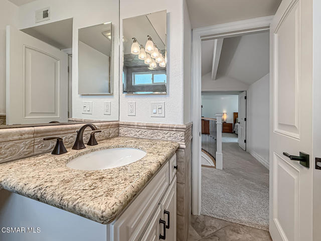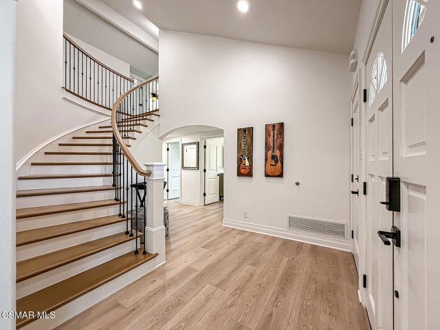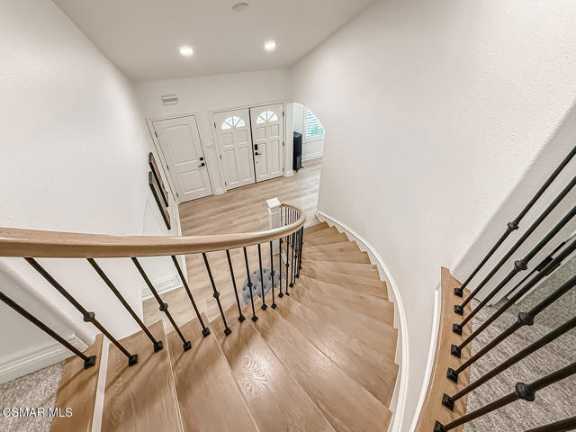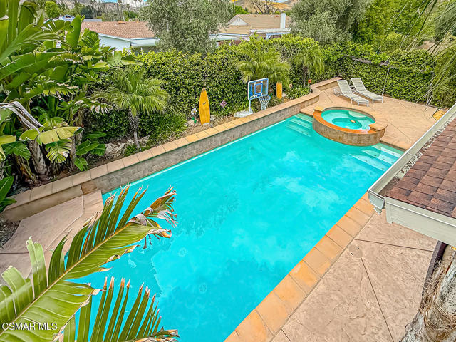 GORGEOUS Upgraded POOL Home with a PRIVATE Backyard Sanctuary in the COVETED Fountainwood neighborhood! Ideally located on a cul-de-sac, this 5 bedroom, 3 bathroom residence offers 2,347 Sq Ft of beautifully upgraded living space with fantastic curb appeal enhanced by a paver-stone driveway and sprawling grass lawns.A multi-colored paver-stone GATED front courtyard welcomes you with charming landscaping and creates an inviting entry to the home. Inside, upgraded double doors introduce the STELLAR ''Tuff Rock'' wood-like flooring found throughout the downstairs while showcasing a GORGEOUS redone staircase featuring solid wrought iron spindles and an upgraded banister. The Living Room serves as a fantastic media or gathering space with plantation shuttered windows overlooking the courtyard, built-in JBL ceiling speakers, crown molding, and upgraded baseboards. The wall between the Living Room and staircase has been EXTENDED to provide an ideal space for an entertainment center.The Family Room is BRIGHT from tall windows and sliding glass doors overlooking the backyard and features motorized window treatments, built-in JBL ceiling speakers, and a HANDSOME fireplace with grand stone hearth and mantle. The Kitchen has been NEWLY & COMPLETELY remodeled to showcase gorgeous Quartzite countertops, high-end ''Andrews Fine Cabinets and Millworks'' soft-close cabinetry and extra-deep drawers, a LONG quartzite-topped center island with breakfast bar seating, pantry with pull-out shelving, and stainless-steel appliances including an LG 5-burner gas range, LG built-in microwave, and a Kraus sink beneath windows with motorized shades. The Dining Room has been OPENED to the Kitchen to create a seamless flow from Living Room to Kitchen and enjoys recessed lighting and sliding glass doors with motorized window treatments.A roomy Downstairs Bedroom features high-end 1.75'' double doors, sliding glass doors to the side yard, step-in closet, ceiling fan, and a continuation of the upgraded flooring. The neighboring Downstairs Bathroom has been upgraded with ceramic tile flooring, granite-topped vanity, and a REDONE shower with frameless glass doors.Upstairs, NEW plush carpet runs throughout the hallway and bedrooms. Three Secondary Bedrooms offer generous space with mirrored wardrobe closets, plantation shuttered windows, and ceiling fans. The Primary Suite is a TRUE retreat featuring new carpet, a DEEP walk-in closet with double doors, and sliding glass doors to a private balcony overlooking the backyard. The Primary Bathroom includes a granite-topped vanity, ceramic tile flooring, and a separate water room with a REDONE shower matching the downstairs bath.The backyard is a COMPLETELY PRIVATE oasis framed by tropical vegetation and highlighted by a glimmering pool and spa, stamped colored concrete patios, and a high-quality patio cover with skylights and ceiling fans. Grape vines, bamboo, and banana trees create a lush, vacation-like setting. A wide side yard with flagstone surfacing adds additional outdoor space.A directly accessible 3-car garage is currently configured as a music studio but may be easily converted back to a garage and offers finished walls, painted ceilings, carpet flooring, and extensive rafter storage accessed via a pull-down staircase.Additional highlights include gorgeous upgraded 1.75'' interior doors, dual-paned windows throughout, modern hidden tilt-rod plantation shutters, upgraded crown molding and baseboards, and a newer furnace.Located near fantastic hiking trails, award-winning schools and close to Mae Boyar Park, Brookside Elementary, Sumac Elementary, and shopping center.