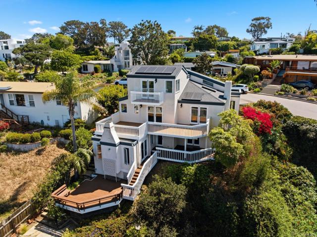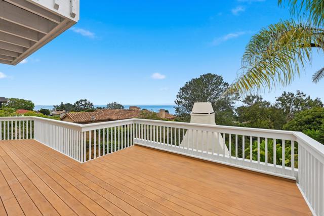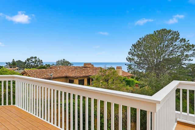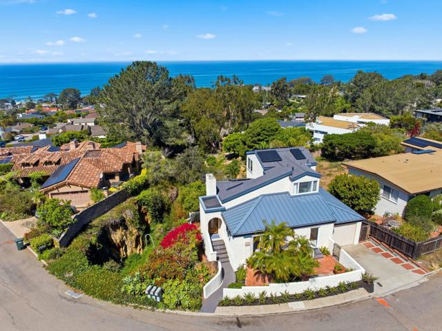 Where the turf meets the surf and offered for the first time, this one-of-a-kind property presents a rare opportunity in the historic town of Olde Del Mar. Originally built in 1954 and thoughtfully reimagined in 1985, this three-bedroom ocean-view home features expansive windows and a generous balcony, which invite the desired blend of indoor and outdoor living. The upstairs primary bedroom, with its own private balcony, is a true sanctuary, and there is also an extra den for a potential home office or gym; leave the space up to your imagination. Adding even more value and flexibility, the property includes an attached one-bedroom guest apartment with a separate entrance, perfect for guests or potential rental income. Both the main home and guest unit are equipped with their own washer and dryer, offering convenience and independence. The design of this unique home provides both privacy and functionality, making it ideal for everyday living or hosting guests. Perched above a stunning canyon with sweeping 180-degree views of the North County San Diego coastline, this home truly captures the charm of Olde Del Mar.