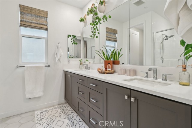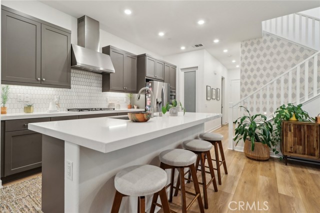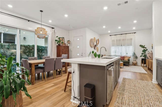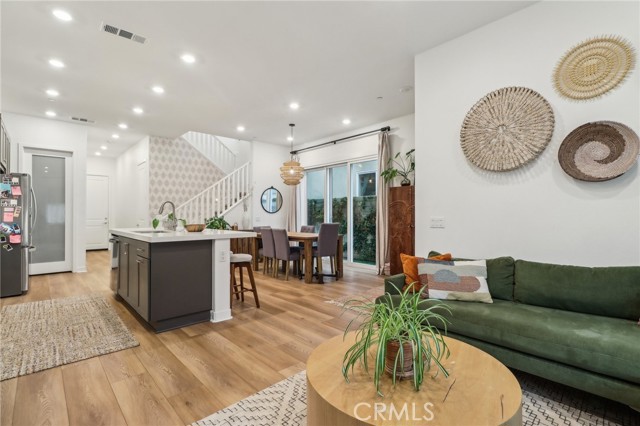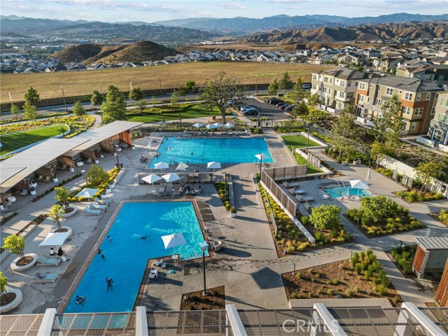 Stunning Move-In Ready Townhome, one of the few with spacious outdoor patio!! Welcome to this beautifully upgraded 3-bedroom, 2.5-bath contemporary townhome offering stylish design, modern comfort, and exceptional community amenities. Built with today’s lifestyle in mind, this home features high ceilings, recessed lighting, and an open-concept floor plan that creates a bright and airy living space perfect for both relaxing and entertaining. The chef-inspired kitchen showcases quartz countertops, stainless steel appliances, a large center island, and a spacious walk-in pantry, seamlessly flowing into the main living and dining areas. A convenient downstairs powder room adds function for guests. Upstairs, enjoy a versatile loft space ideal for a home office, media room, or play area. The spacious primary suite offers a walk-in closet, dual-sink quartz vanity, beautifully tiled walk-in shower, and direct access to a large covered patio, creating the perfect private retreat. Two additional guest bedrooms, a full secondary bath with separate tub and shower area, and an upstairs laundry room with extra storage complete the second floor. Additional upgrades include a 2-car attached garage with EV charger, tankless water heater, solar, Ring security system, and smart home features. Located in the highly sought-after FivePoint Valencia community, residents enjoy resort-style pools, parks, scenic walking trails, and beautifully maintained open spaces. Conveniently close to shopping, dining, California Institute of the Arts, College of the Canyons, Six Flags Magic Mountain, top-rated schools, medical facilities, and easy freeway access, this home offers the perfect blend of luxury, convenience, and lifestyle.