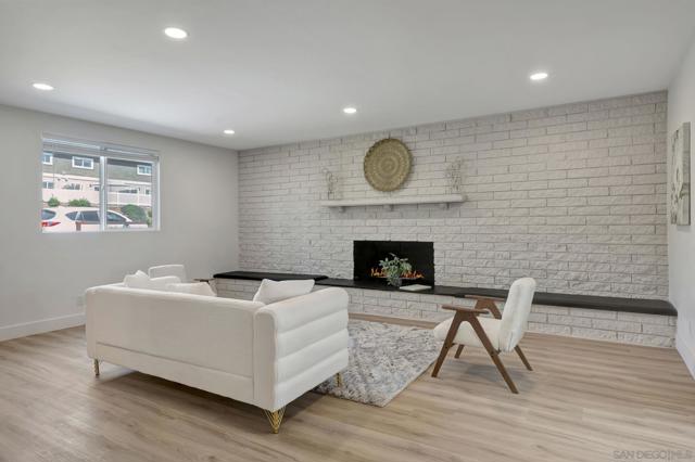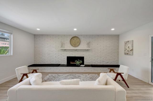 Beautifully remodeled, single-level home in La Mesa designed with exceptional indoor/outdoor living. The home features a stunning modern kitchen that opens seamlessly to the dining area, living room, and an expansive family room with a cozy fireplace—creating a bright and spacious layout. Large sliding doors from the family room lead to an impressive covered patio of nearly 400 square feet, providing the perfect space to host guests or relax while enjoying views of the beautifully landscaped backyard. Inside, the home showcases wide-plank LVP flooring throughout, new Milgard windows, and tastefully updated, modern bathrooms. Additional highlights include new central HVAC and ducting, roof, indoor laundry, large attached workshop and a desirable corner lot that adds wonderful curb appeal. Conveniently located near Grossmont High School and just minutes from La Mesa Village, where you’ll find a variety of popular dining and shopping options.