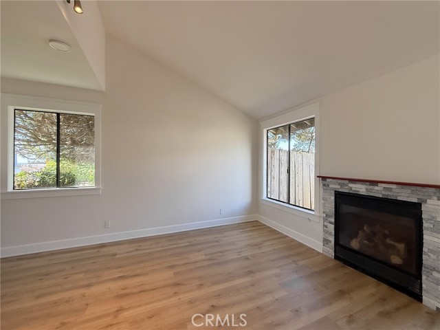 Just a few blocks from the beach in San Simeon, this end-unit condo offers a versatile layout with two bedrooms and two bathrooms along with peekaboo ocean views. The downstairs area may function as the main living room or as a private suite for an aging parent or guest. This level features new flooring, fresh interior paint, and includes a spacious room with an adjoining newly remodeled tiled bathroom with a roll-in shower, designed with ease of access in mind. The kitchen features a redesigned European-inspired, space-efficient design with an induction cooktop and compact dishwasher. Upstairs, you’ll find two bedrooms and a full bathroom, offering comfortable separation and privacy. Attached single-car garage with washer and dryer included. Enjoy coastal living at the southern gateway to Big Sur, with hiking, biking, surfing, fishing, and dining just moments away.