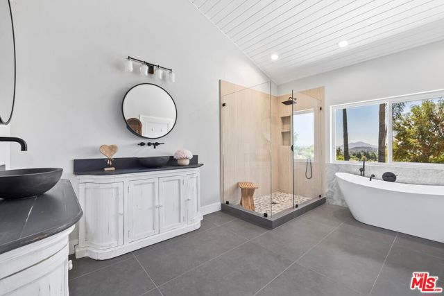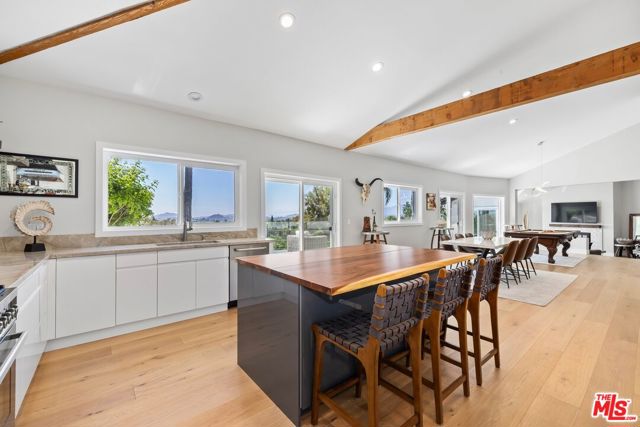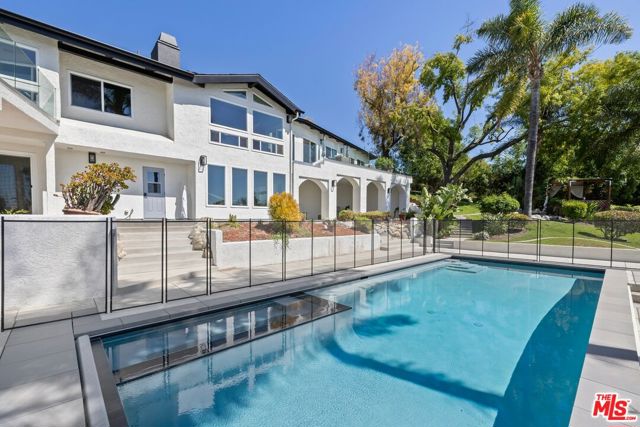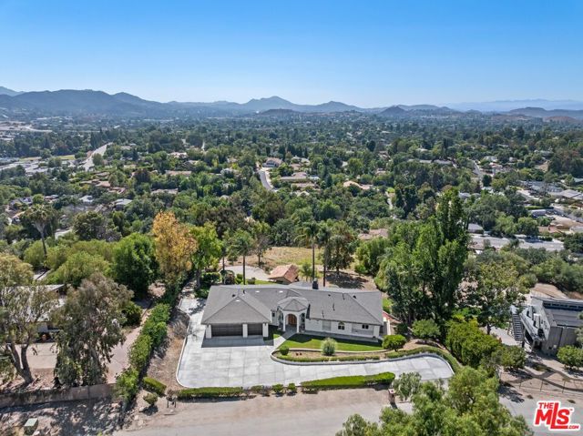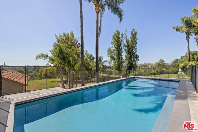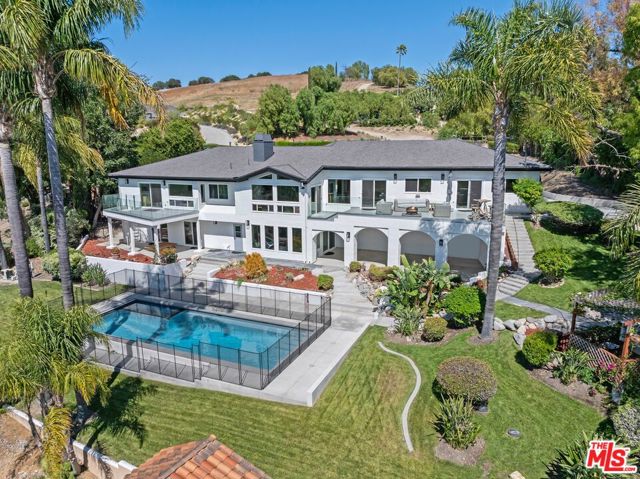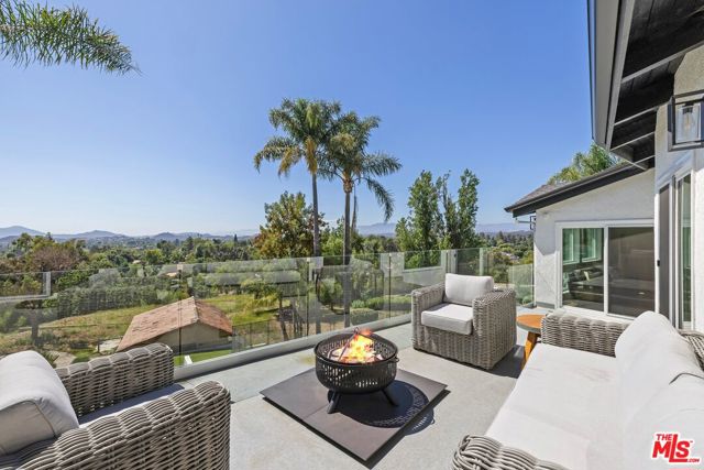 Privately positioned at the end of a long driveway on a quiet cul-de-sac, this fully reimagined 1.23 acre estate has undergone a comprehensive down to the stud renovation, offering the quality and feel of a brand new home. A dramatic entry opens to expansive living spaces highlighted by soaring ceilings, vaulted wood details, floor-to-ceiling windows, and sweeping views. The formal dining room and redesigned chef's kitchen featuring a large center island, built-in refrigeration, and breakfast area flow seamlessly to multiple balconies, creating effortless indoor-outdoor living. The private bedroom wing includes two secondary bedrooms and a stunning primary suite retreat with vaulted ceilings, sitting area, private balcony, walk-in closet, and spa-like bath. The lower level offers three additional bedrooms, two full baths with exterior access, office or gym space, generous storage, and a large bonus room with fireplace opening to a covered patio. Outdoors, the grounds have been transformed into a resort-style setting with a brand-new jacuzzi and oversized salt water pool that was designed to play volleyball. Below that you have expansive flat land with potential for, ADU and any sport court that you desire. Equestrian amenities include a potential barn and arena, all surrounded by scenic views. Additional highlights include a three-car garage, extended driveway with possible RV parking, exceptional privacy, no HOAs, a prime location near main water supply for Thousand Oak, top-rated schools, shopping, and the Civic Arts Plaza.