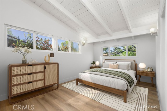 Tucked away on a quiet Winnetka street, this reimagined mid century modern offers both architectural charm and strong investment appeal, featuring a detached ADU that provides immediate rental income and long term flexibility. The main residence spans approximately 1,500 square feet with 4 bedrooms and 3 bathrooms, showcasing classic mid century elements including vaulted post and beam ceilings, clerestory windows, and expansive walls of glass that fill the home with natural light. Open concept living and dining areas flow seamlessly into a renovated kitchen with quartz countertops, stainless steel appliances, and a center island, all designed for easy everyday living and entertaining. Sliding glass doors open to a private yard surrounded by mature landscaping, creating a true indoor outdoor experience. The detached, approximately 500 square foot 1 bedroom, 1 bath ADU, completed in 2022, includes a full kitchen and washer and dryer hookups and is currently tenant occupied, delivering immediate income. Set on a spacious corner lot within a well established neighborhood, this property blends timeless design, modern updates, and built in income potential, ideal for both owner users and investors alike.