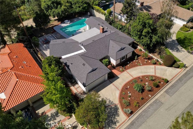 This thoughtfully upgraded residence offers both refined design and a true sense of connection to everyday living on an expansive lot with a pool, where elevated finishes and inviting spaces to come together in a quiet cul-de-sac setting near award-winning schools. From the moment you enter, the home reveals a sense of openness and light, with a living room defined by high ceilings, natural brightness, gleaming hardwood floors creating an atmosphere that feels both sophisticated and welcoming. The dining room, anchored by a fireplace, offers a warm and intimate setting for gatherings, while the open kitchen serves as the centerpiece of the home, appointed with quartz countertops, a generous center island, abundant cabinetry, and stainless-steel appliances, designed to bring everything together with ease. The home features four bedrooms and two and a half bathrooms, including a spacious primary suite with a remodeled bathroom, while all bathrooms throughout the home reflect a cohesive, modern design. A flexible bonus room adds versatility for a home office, creative space, or additional lounge area. Sliders and dual pane windows enhance the seamless connection between indoor and outdoor living, opening to a private backyard retreat complete with a pool and drought-conscious landscaping that balances beauty with functionality. Recent upgrades, including a brand-new roof with a 50-year warranty, new rain gutters, and fresh exterior paint, provide both peace of mind and long-term value. Additional features include central air and heat, circular driveway and a two-car attached garage. Ideally situated on one of the nicest streets in La CaƱada, this home offers convenient access to local parks, dining, shopping, and highly regarded award-winning schools, creating a living experience that feels both elevated and effortless.