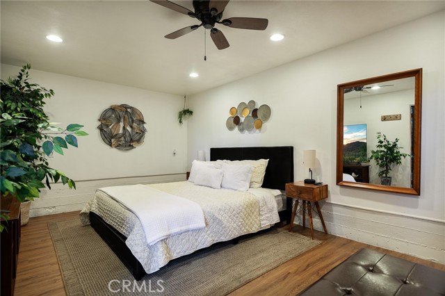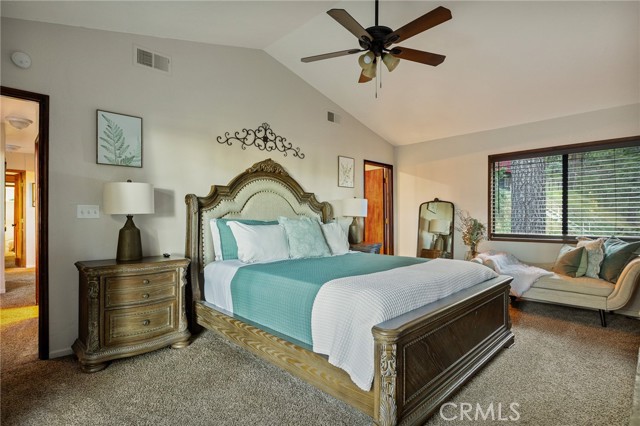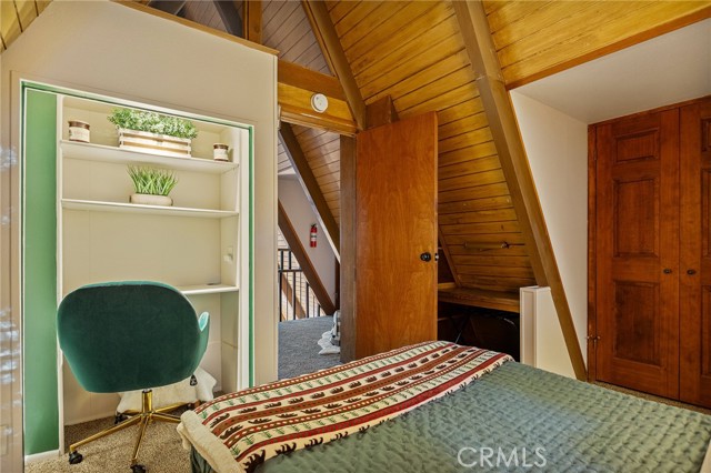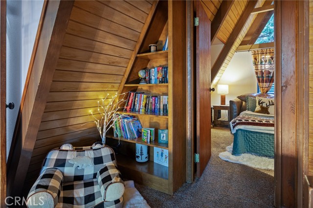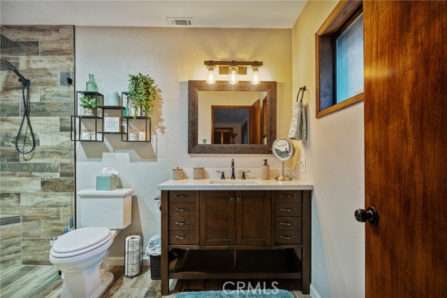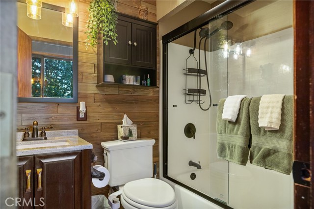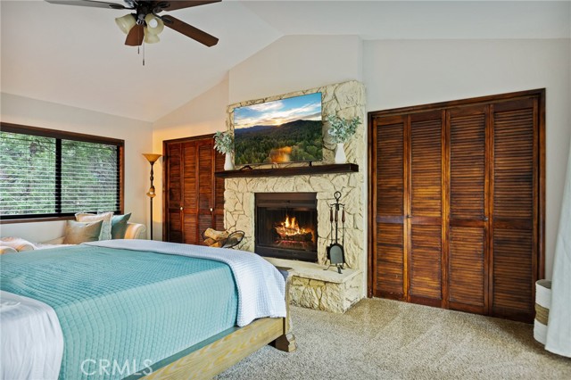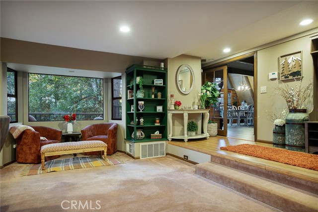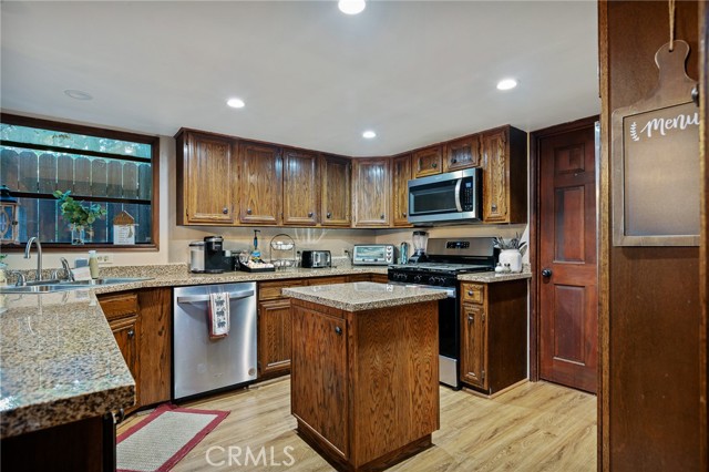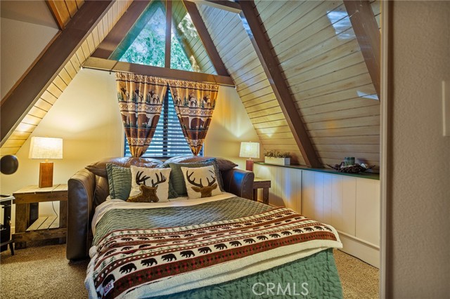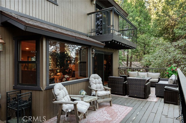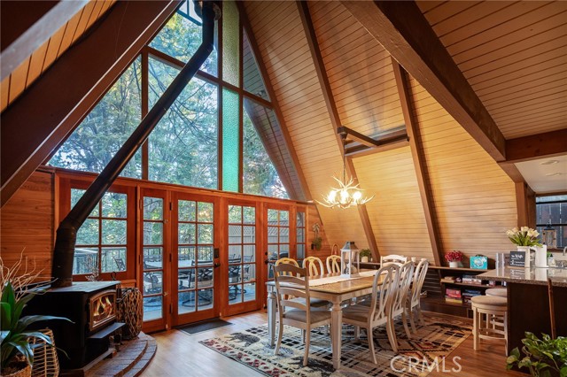 WOW, WOW, WOW!!! Looking for a Super Cool RUSTIC CABIN with a GREAT MOUNTAIN VIBE to Escape to? YOU WILL ABSOLUTELY LOVE this One with it's A-Frame Windows, Woodburning Stove and Cutesy Mountain Touches Throughout! You Won't Feel Cramped Here with Five Bedrooms Generously Spaced Apart, including an En Suite Bedroom on the Main Level! The Oversized Family Room is Sooo Dreamy with a Cozy Wood Burning Fireplace and HUGE WINDOWS Everywhere to Watch the Snow Fall! Did I mention Snow? Just a 10 Minute Drive to Snow Valley Ski Resort (Woot, woot!) and 15 Minutes to the Lake Arrowhead Village! The Island Kitchen with Breakfast Bar for the Kiddos has Oodles of Storage Space & Looks out to the Wall of Windows that Opens to the Amazing Back Deck Area! The Decking Runs the Length of the House and Has Multiple Sitting Areas that Overlook the Forest. PERFECT FOR ENTERTAINING!!! So Peaceful and Serene!!!! The 5th Bedroom Has a Separate Entrance Down Below. Recently this Home Has Been a Very Successful Air Bnb, Bringing in Approx $500/night!! Totally Level Entry into this Home too and a Big Backyard Makes this a Perfect Full time Home too! Come & See!!