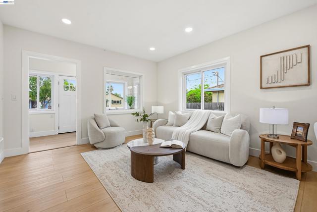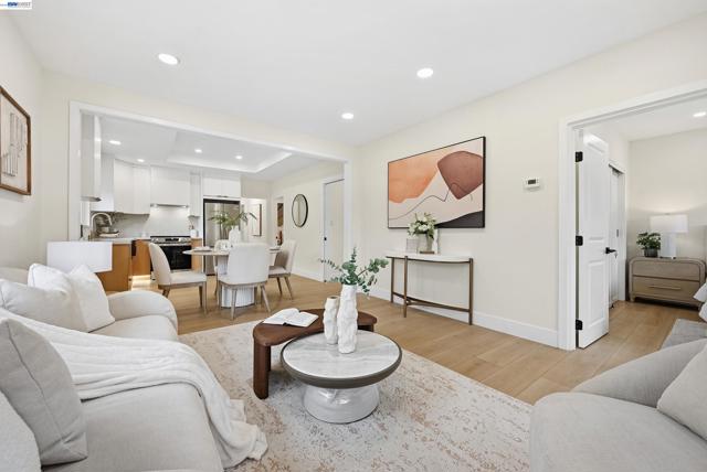 Best value in Bay Farm Alameda! A must-see opportunity featuring a huge flat lot with endless potential, complemented by a detached garage, ideal for expansion or ADU (buyer to verify). This thoughtfully renovated home offers a bright, open layout with abundant natural light and seamless flow between living, dining, and kitchen areas. The designer kitchen features sleek cabinetry, quartz countertops, stylish backsplash, and stainless steel appliances. Interior highlights include recessed LED lighting and curated design details throughout, including a striking wood slat accent wall and custom built-ins. The bathroom features modern vanities, illuminated mirrors, and contemporary finishes. Exterior upgrades include refreshed landscaping and an improved front yard, enhancing curb appeal and overall functionality. Located in the highly regarded Alameda Unified School District, Bay Farm Island offers parks, greenbelts, and the Chuck Corica Golf Complex, with easy access to highways, public transit, and the Harbor Bay Ferry to San Francisco. No HOA. Don’t miss this opportunity!