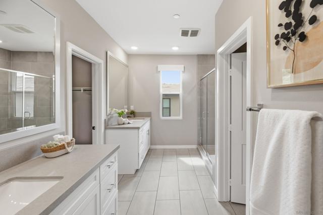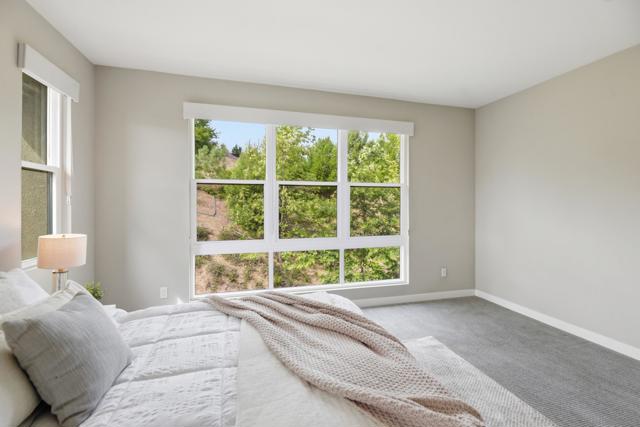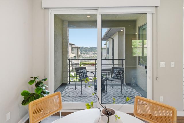 Looking for a one-story layout with a top-floor city view? Look no further than this newer built modern townhouse in Promontory sits at the highest point in all of Civita. The floor plan is thoughtfully designed to feel open and connected, featuring a top floor that spans over 1,600 sq. ft. The living, kitchen, and dining areas flow seamlessly, creating a spacious atmosphere, while the master suite and additional bedrooms are tucked away for privacy. Dramatic windows in the master suite and living areas bring in abundant natural light and views of the green hillside. The large, covered deck off the dining area serves as a natural extension of the home—perfect for enjoying fresh air, hosting a BBQ, or watching twinkling city lights. Additionally, a guest bedroom with a full bath is conveniently located on the second floor. Civita is renowned for its resort-style amenities and unbeatable central location in Mission Valley, San Diego. This property offers a unique opportunity to enjoy a tranquil connection to nature within a vibrant urban setting, featuring vistas that make you forget you are in the heart of a major metropolitan area.