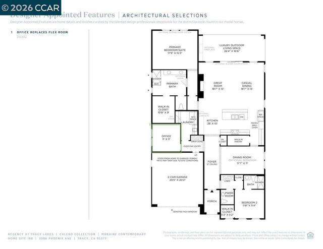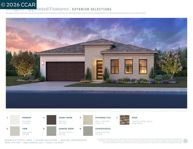 Welcome to Regency at Tracy Lakes 55+ active adult gated community, where luxury living takes center stage. With three picturesque lakes, this vibrant community offers a fishing dock, 1-acre community garden and dog park. With a wealth of amenities, including a clubhouse, pools, cabanas, yoga studio, fitness center, bocce ball, and pickleball courts, every day is an opportunity for relaxation and recreation. The onsite lifestyle director ensures there’s always something to look forward to; from fitness classes to comedy shows and wine nights. There's still time to choose your finishes in this design-ready home. Lake Front location with professionally landscaped front and Low-maintenance maintained by the HOA. Bonus flex room add a sense of elegance and seclusion. Generous walk-in closet and deluxe primary bath enhance the lovely primary bedroom suite. Conveniently located off the foyer, the secondary bedroom features a walk-in closet and a private bath. Elegant Toll Brothers craftsmanship, with 10-foot ceilings, 8-foot doors, 5 1/4" baseboards, dual-pane Anderson windows, Western stacking sliding doors, and modern energy-saving LED integrated recessed lights. (photos not of actual home, for marketing only, features and upgrades are different, same floor plan)
