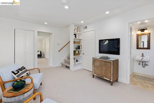 Tucked near the end of a coveted Upper Rockridge cul-de-sac, this updated 3+BD/2BA home offers plenty of light-filled living space with a warm, welcoming feel. The flexible three-level floor plan features multiple living areas ideal for a home office, playroom, media space, or guest retreat—while maintaining an easy flow for everyday living and entertaining. Fresh interior paint and new carpeting make it move-in ready. Set on a large level-to-gently sloping landscaped lot, the sunny outdoor spaces are designed for entertaining, play, and gardening. Enjoy a new rear deck off the family room, a spacious side yard for kids, and planting beds ready for a future vegetable garden. A detached workout room/home office adds versatile bonus space filled with natural light. Templar Place’s cul-de-sac setting fosters a true neighborhood feel, perfect for bike riding and community connection. Ideally located near Montclair Village, Lake Temescal, Claremont Country Club, and College Avenue’s shops and restaurants, this home blends peaceful surroundings with everyday convenience. Rarely do homes in Upper Rockridge offer this combination of cul-de-sac location, large lot, and long-term potential.