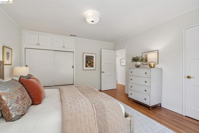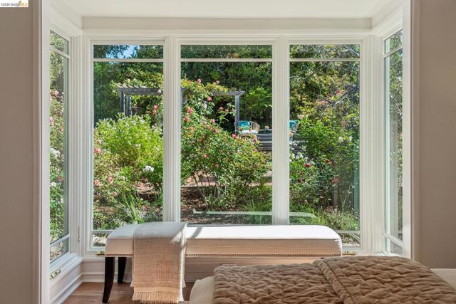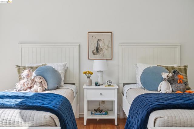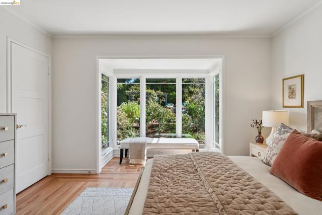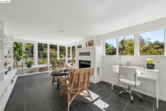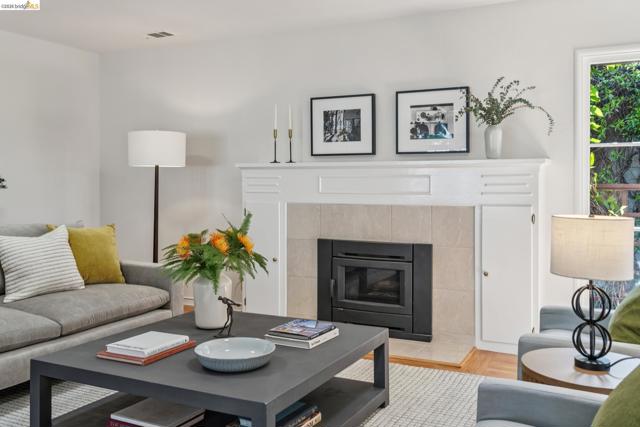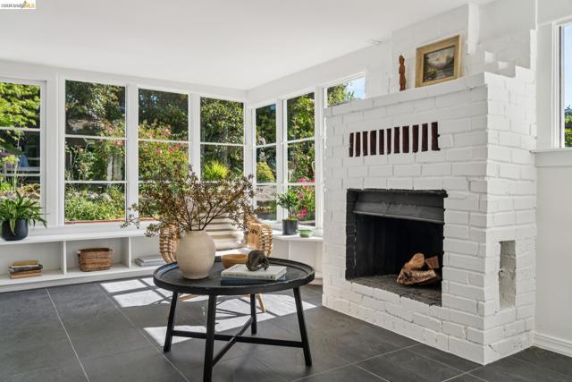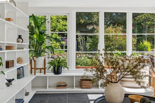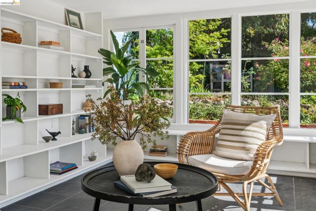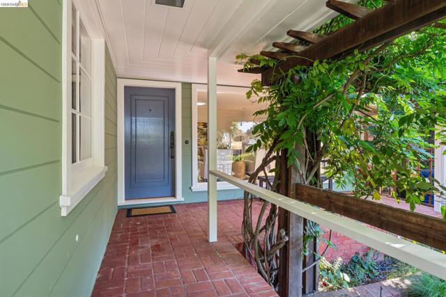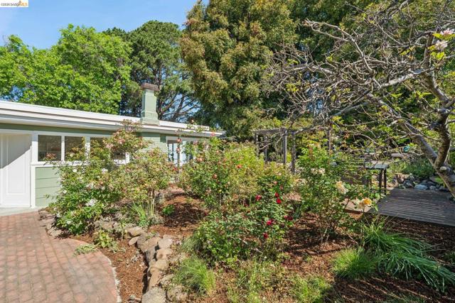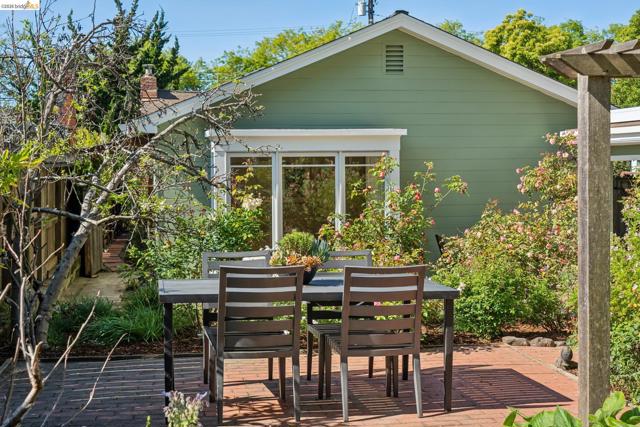 This enchanting El Cerrito garden cottage, nestled in the sought-after Fat Apple’s neighborhood, offers a whimsical retreat close to everything. Community amenities under a mile away include El Cerrito BART, Colusa Circle and Sunday farmers’ market, Cerrito Vista Park, and the Community & Swimming Center, to name just a few. From the sidewalk, you enter the garden through a wooden gate, and immediately you’re greeted by rambling soft yellow roses and flowering wisteria vines. The covered porch provides a peaceful transition from the street into the tranquil home. Windows with views to the garden can be found in every room. The gracious living room and dining room are generously sized to comfortably gather with friends and family. A sweet vintage-tiled kitchen has direct access to the back porch and meandering garden. Two light-filled bedrooms down the hallway and charming original tiles in the bathroom add to the enchanting character of the home. The primary bedroom has a large garden window connecting the room to the idyllic backyard. Just through the kitchen door on your way to the garden, you can’t miss the detached garden cottage, with 2 window-filled walls and a fireplace; it’s the perfect spot for art or play, come rain or shine. This bonus space invites your imagination.