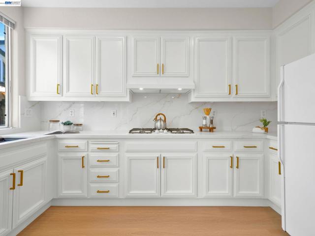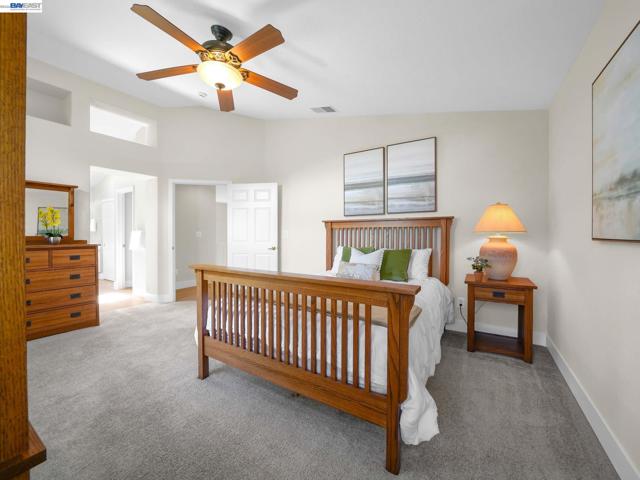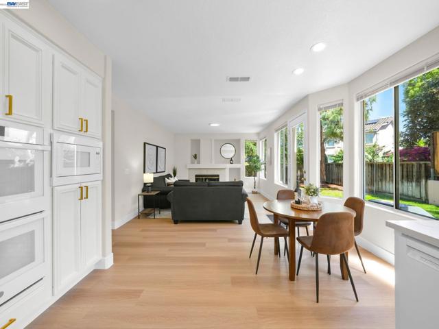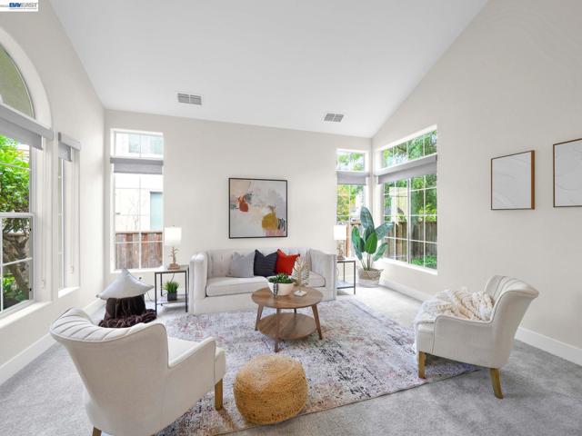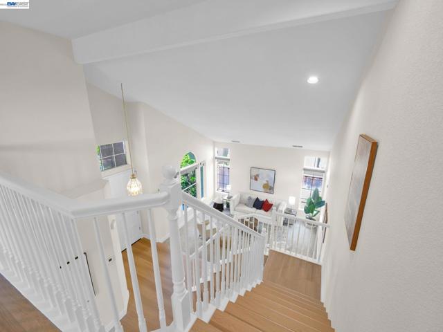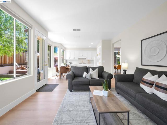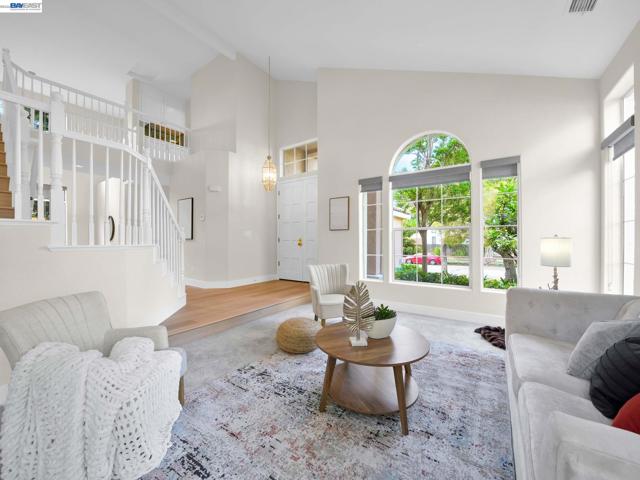 Spectacular home in Newarkâs desirable Lake neighborhood featuring 4 bedrooms and 3 bathrooms, including a bedroom and full bathroom on the main level. Soaring ceilings and a dramatic open staircase create a striking first impression and fill the home with natural light. Freshly painted inside and out, with luxury vinyl plank flooring through most of the home, offering a clean, modern and cohesive feel. Thoughtfully updated kitchen features sleek quartz countertops, updated sink, cooktop and exhaust hood, ample cabinetry, generous workspace, and a cozy breakfast nook for casual dining. Tastefully enhanced bathrooms include quartz countertops, upgraded fixtures, contemporary mirrors, and updated lighting. Spacious primary suite offers dual vanities, stall shower, soaking tub, walk-in closet, and vaulted ceilings. Landscaped backyard with redwood deck and planter boxes. Central A/C, high-efficiency furnace, 3-car garage. Prime location near shopping, HWY 84, 880, and Silicon Valley. Close to Newark Lakeshore Park.