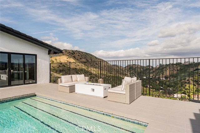 Set within the guard-gated community of Bell Canyon, this residence offers a rare combination of privacy, natural surroundings, and a true sense of calm. Once inside the gates, the pace shifts, there’s a quiet, open feeling that makes everyday living feel more relaxed and intentional. The setting isn’t just something you look at, it becomes part of how you experience the home. The views are a defining feature. Rolling hills, canyon ridgelines, and distant city lights create a sense of space that extends well beyond the property itself. Mornings are filled with soft, natural light, while evenings bring layered sunsets that naturally slow things down. Large windows and open sightlines bring the outdoors in, making the landscape feel like a constant part of the home. The layout is designed for both comfortable daily living and easy entertaining. Spaces flow naturally from one to the next, creating an environment that feels open without losing warmth. Vaulted, beamed ceilings add volume and light, giving the main living areas a sense of scale while still feeling inviting. Hardwood built-ins add character and function offering practical storage and display while grounding the space with a sense of craftsmanship. The result is a home that works just as well for a quiet night in as it does for hosting friends and family. Indoor and outdoor living come together seamlessly. Expansive openings lead to a backyard designed for year-round use, with a pool and multiple areas to gather, relax, and entertain. Whether it’s a weekend get-together or a quiet evening outside, the space is designed to be used and enjoyed. Living here also brings a noticeable sense of balance. The views and natural setting encourage small daily moments, morning coffee outside, a break to take in the scenery, or winding down at sunset. Over time, those moments add up, creating a lifestyle that feels more grounded and connected. Bell Canyon itself adds another layer to the experience. The community offers miles of trails, an equestrian center, tennis and pickleball courts, and a fitness facility, all surrounded by preserved open space. There’s also a strong sense of community, with events and gatherings throughout the year that bring neighbors together. Residents are served by the highly regarded Las Virgenes Unified School District, with convenient access to both public and private schools, along with nearby dining, shopping, and entertainment.