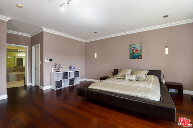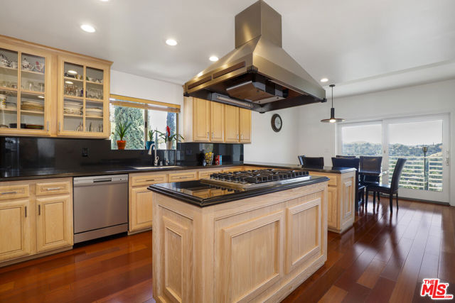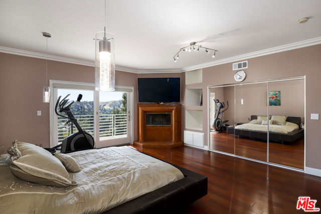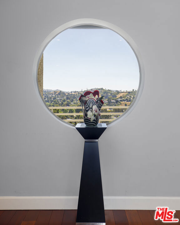 Proudly presenting a refined, architecturally striking residence with unobstructed views that blends sophistication, quality craftsmanship, and timeless design! An impressive entry welcomes you into a gracious foyer, showcasing rich solid Brazilian Cherry wood flooring that flows beautifully throughout the upper level. The home features an expansive open floor plan ideal for both elegant entertaining and comfortable everyday living. A spacious formal dining room leads to a dramatic step-down living room highlighted by a fireplace, soaring cathedral ceilings, beautifully designed skylights that illuminate the living space, and a stunning wall of glass doors that open to an inviting outdoor view deck, creating a seamless indoor-outdoor experience. Adjacent to the living area is an expansive family room featuring a striking circular architectural window that fills the space with natural light and distinctive design character. The chef's gourmet kitchen is thoughtfully appointed with top-tier appliances, including a six-burner Viking cooktop, Wolf steam convection oven, an additional Viking oven, and a full-sized Sub-Zero refrigerator, offering both style and performance for culinary enthusiasts. A beautiful Brazilian Cherry staircase leads to the lower level, where the generous primary suite provides a private retreat complete with its own fireplace and balcony. The spa-inspired primary bath includes a large walk-in sauna, an oversized soaking tub, a separate toilet and bidet area, and an adjoining flexible space perfect for a home gym, private office, or wellness room with its own entry/exit to the outdoors. Also on the lower level are two additional well-proportioned bedrooms and a spacious laundry room. Set on a lot of over 12,000 square feet, the backyard offers a gentle downslope while remaining fully usable, presenting wonderful opportunities for outdoor living, entertaining, or creating a personalized landscape retreat. A rare offering that combines architectural character, luxurious amenities, and breathtaking views an exceptional place to call home.