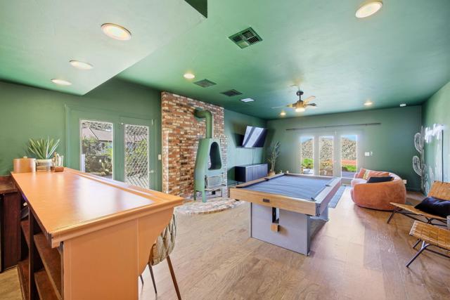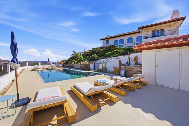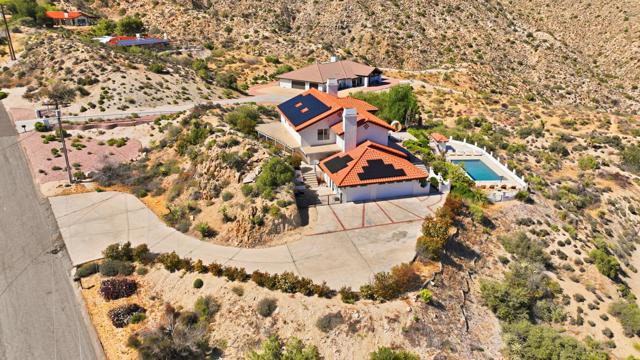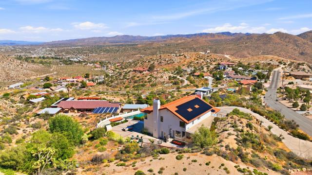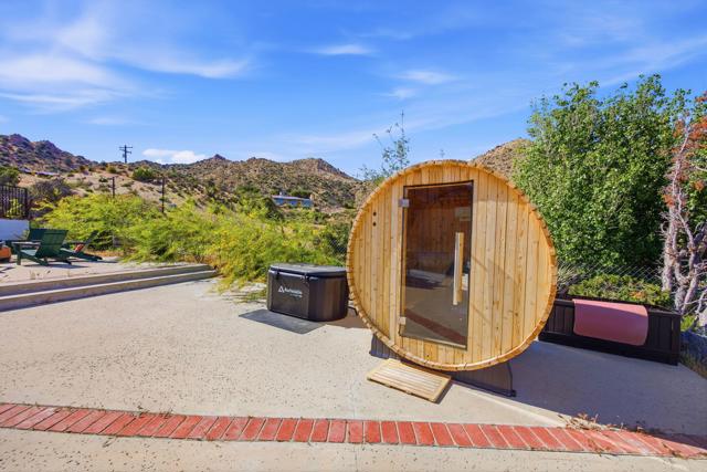 A designer desert oasis spanning over 2.5 acres in the prestigious Country Club area of Yucca Valley with proven short term rental income. This view estate delivers a rare combination of luxurious desert living, modern elegance, and serene natural surroundings, making it an exceptional opportunity for homeowners and investors alike.Recently upgraded inside and out, this private pool home showcases unobstructed panoramic views, classic Spanish architectural elements, soaring ceilings, a relaxing fireplace, an entertainer's bar, formal living areas, a gourmet kitchen, a dedicated game room, and more.Step outside to an entirely new pool deck featuring a PebbleTec finish and sweeping canyon views that stretch for miles. This is more than a home. It is a private wellness destination where you can host your own sound bath sessions, practice yoga in total serenity, explore private hiking trails, or unwind in the jacuzzi while taking in the landscape.Additional highlights include new landscaping, updated lighting throughout, a steam shower, Tesla EV charging station, fully paid off solar, and a newly paved private trail.Furniture may be negotiable. Located just minutes from Joshua Tree, Pioneertown, and the best dining and nightlife the Hi Desert has to offer.