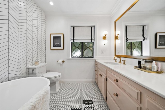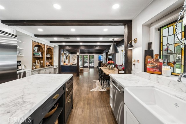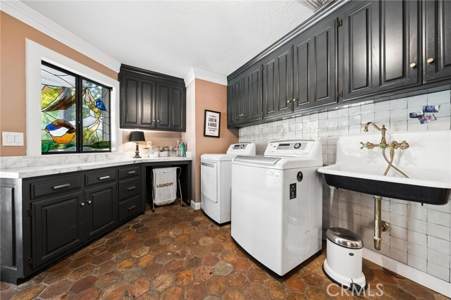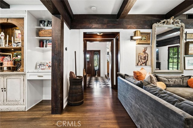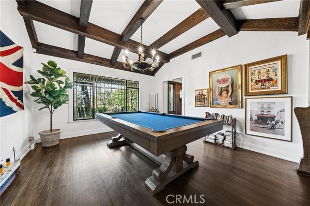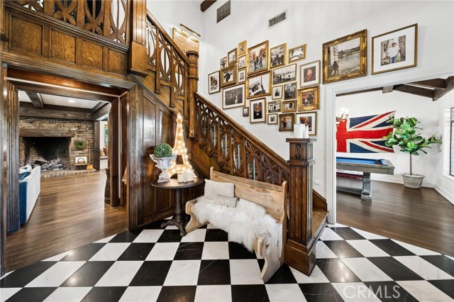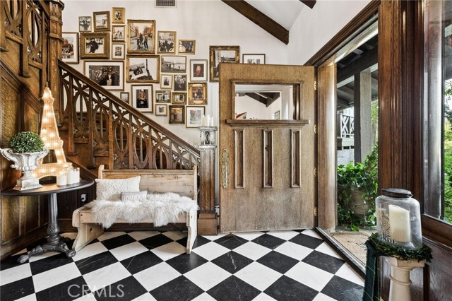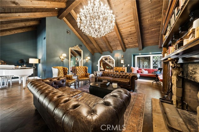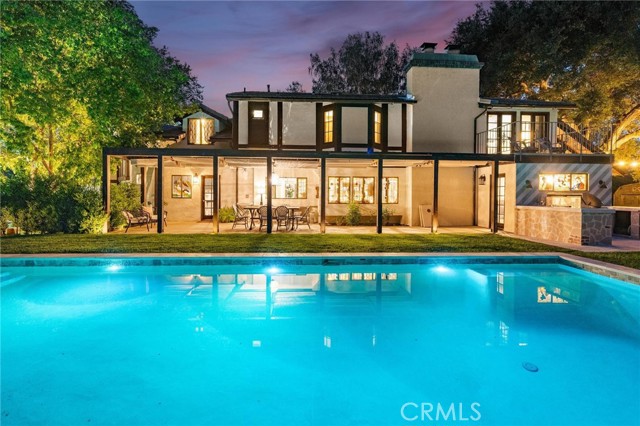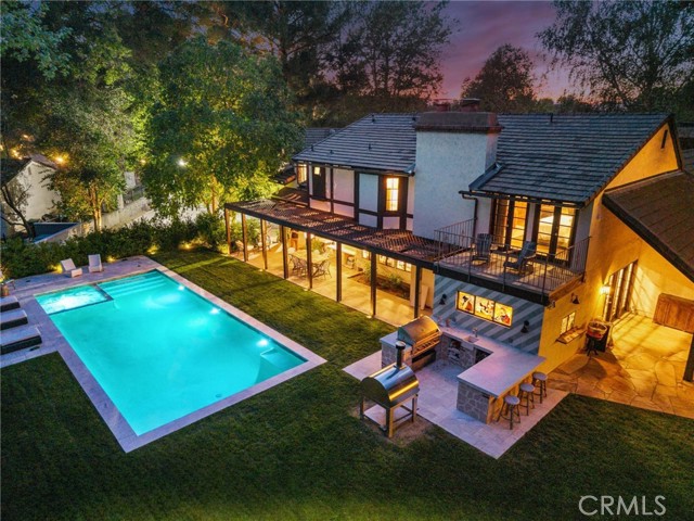 There are only a handful of custom homes in the prestigious Sand Canyon community that truly capture both architectural significance & modern refinement — and 15656 Iron Canyon is one of them. Set on over two usable acres, this exceptional property seamlessly blends the timeless character of coveted Cloyd architecture with extensive high-end updates by its current owners. From the newly installed pool to the fully remodeled kitchen & baths, every improvement enhances both style & functionality while honoring the home’s original charm. The result is a rare offering rich in history & perfectly suited for today’s lifestyle. The grounds are spectacular — manicured, park-like, & surrounded by rolling hills, mature trees, & unmatched privacy rarely found in tract homes. Set well back from the street with three separate gated entrances, the property offers abundant space for vehicles, boats, RVs, & more. Designed for entertaining & relaxation, the outdoor spaces feature multiple conversation areas, a built-in cook station, firepit lounge, covered & open patios, a pizza oven, a warm/cold plunge, & a lighted sport court. A Generac generator adds convenience & peace of mind, providing power to the entire property if needed. Inside, old-world charm meets modern comfort. Rich wood flooring, exposed beam ceilings, multiple fireplaces, a whole house LifeSource water filtration system, & a built-in bar create a warm & inviting atmosphere. Unique historical elements — including terra cotta tile from France in the mudroom, a staircase & front door from the Edward Horton estate in Hollywood, & original stained glass from Jeanette Cloyd — add distinctive character. The redesigned kitchen features Calacatta countertops, high-end stainless steel appliances, & a walk-in pantry. All four-and-a-half bathrooms have been updated, & the primary suite offers a private deck overlooking the pool with separate his & hers bathrooms & spacious walk-in closets. Additional upgrades include a newer roof & updated electrical. If you appreciate craftsmanship, history, & architectural detail — where plaster walls replace drywall & every space tells a story — this home is truly special. If you’re seeking over two flat acres with no HOA in one of Sand Canyon’s most desirable settings, this is an opportunity not to be missed.