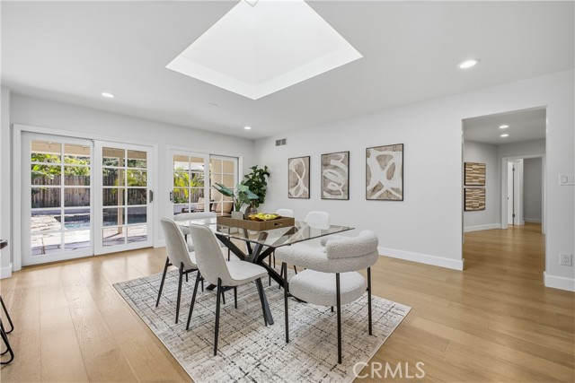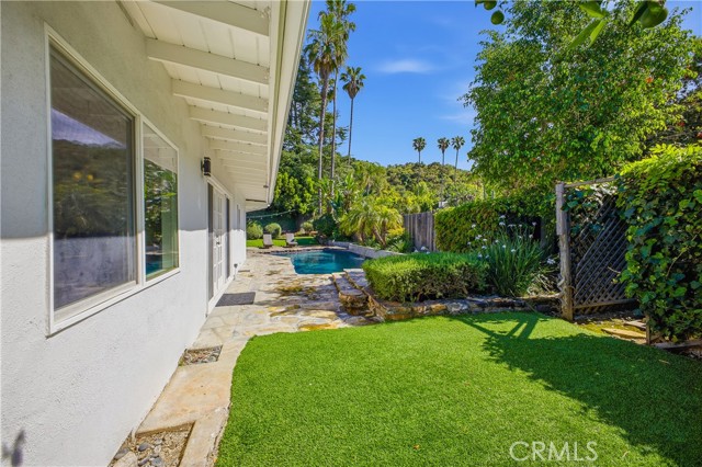 Located on a quiet cul-de-sac, this tastefully updated single-story home offers the perfect blend of comfort, style, and convenience. Designed with an open concept layout filled with natural light, the home features a formal entry, a spacious living room with a fireplace, and a family/dining area that flows seamlessly into a modern kitchen with Carrara marble countertops and stainless steel appliances. The primary suite features a walk-in closet and en-suite bath with a spa tub and separate shower. Step outside to a private backyard oasis with a sparkling pool with waterfall feature, a spa, two grassy areas, and a large covered patio, perfect for year-round entertaining. Recent upgrades include new hardwood floors, skylights, roof and insulation, sewer line, remodeled bathroom and replastered pool and spa. Convenient access to the Westside and Fryman Canyon, this home offers relaxed California living in a prime Studio City location.
