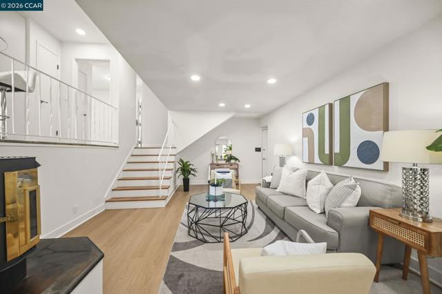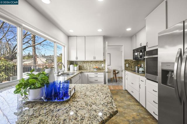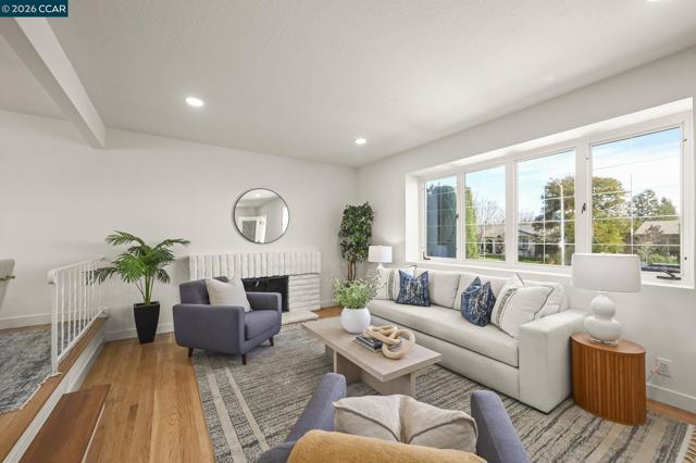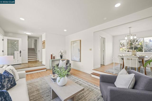 Light-filled and beautifully expanded, this 4-bedroom, 3-bath tri-level home is ideally located in a sought-after neighborhood in San Ramon. Gorgeous hardwood floors and recessed lighting highlight the inviting main level, featuring a spacious living room, formal dining area, and an updated kitchen with stainless steel appliances and granite countertops, all overlooking the back deck for seamless indoor-outdoor living. The lower level offers an oversized family room with a cozy pellet stove and custom built-in bookshelves, creating the perfect space to relax or entertain. This level also includes a bedroom and full bath with a shower, ideal for guests, extended family, or a private home office. Upstairs, you’ll find two generously sized, light-filled bedrooms, an updated hall bath, and an expansive primary suite complete with a sitting room and charming fireplace—your own private retreat. The backyard is designed for both relaxation and entertaining, featuring an elevated deck and a luxurious spa tucked beneath a covered pavilion. Enjoy a prime location just minutes from top-rated schools, parks, and the vibrant City Center Bishop Ranch, with easy access to Bishop Ranch and major freeways. This is a home you won’t want to miss.